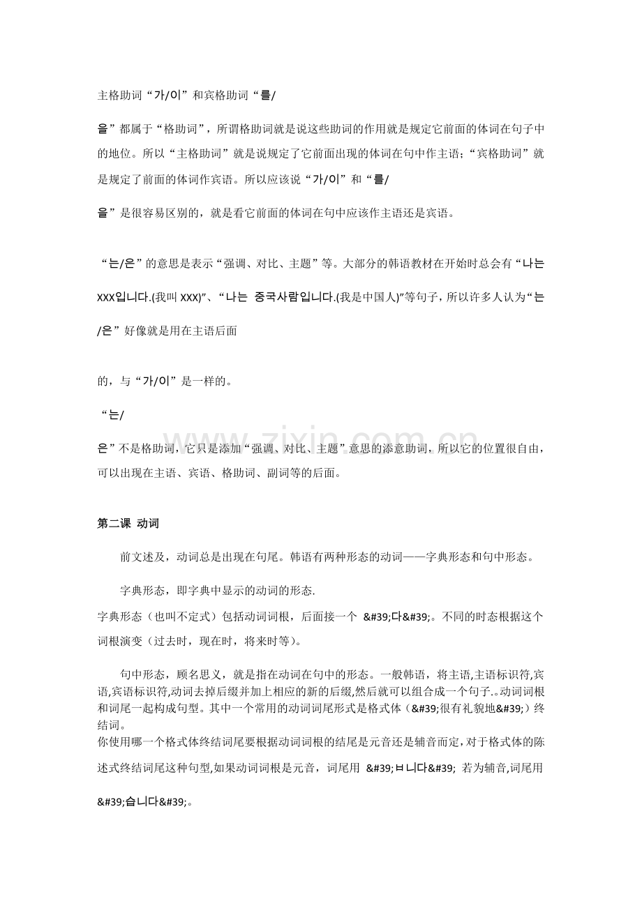如上,“가/이”是主格助词,“는/은”是添意助词,“를/을”是宾格助词。