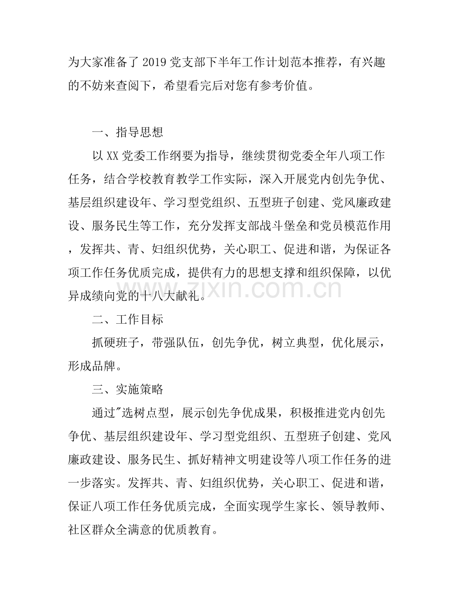 为大家准备了2019党支部下半年工作计划范本推荐,有兴趣的不妨来查阅下,希望看完后对您有参考价值。