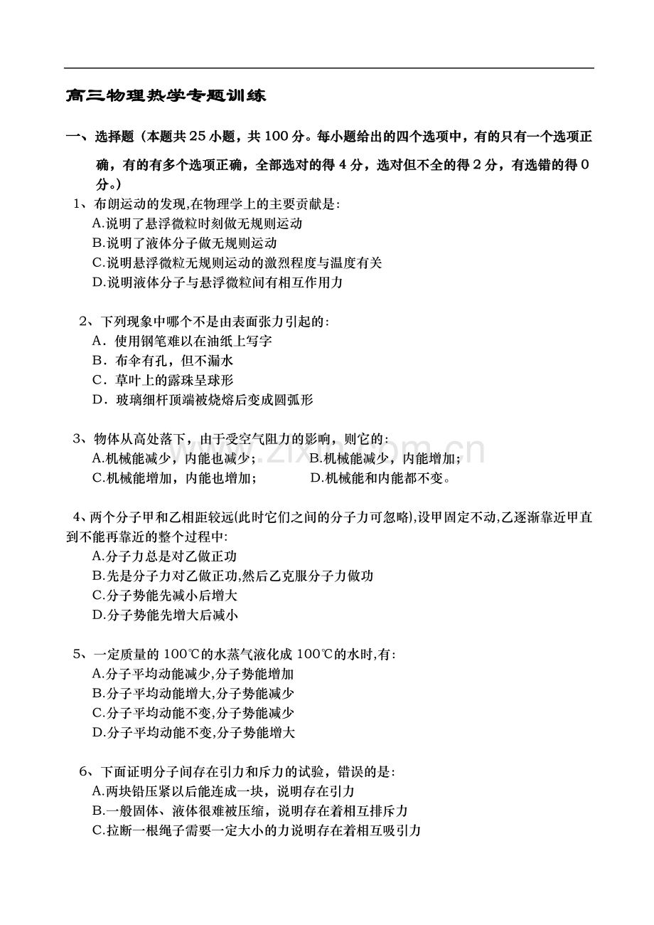 一、选择题(本题包括25小题,共100分。每小题给出的四个选项中,有的只有一个选项正确,有的有多个选项正确,全部选对的得4分,选对但不全的得2分,有选错的得0分。)