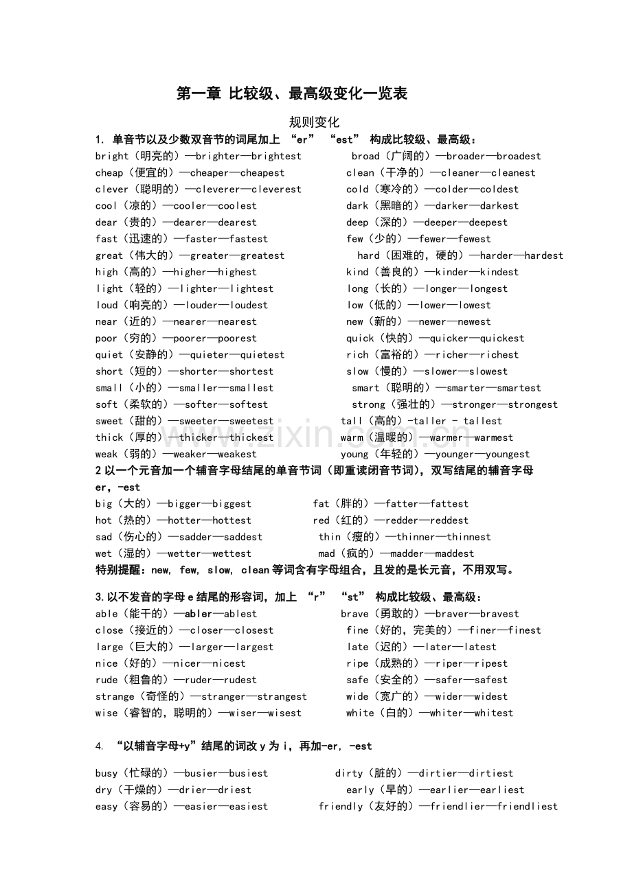 第一章 比较级、最高级变化一览表