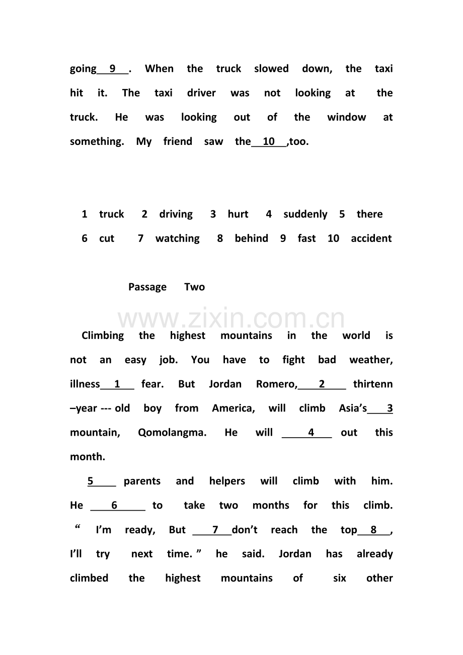 5 parents and helpers will climb with him. He 6 to take two months for this climb. “ I’m ready, But 7 don’t reach the top 8 , I’ll try next time. ” he said. Jordan has already climbed the highest mountains of six other outinents(洲).