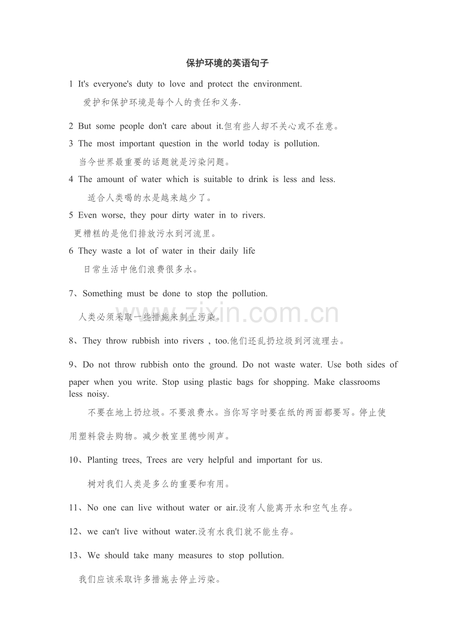 27、Protecting the environment,everyone’s duty.保护环境,人人有责。