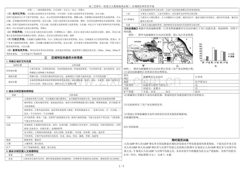 高三艺体生一轮复习人教版地理必修三 区域特征和差异学案