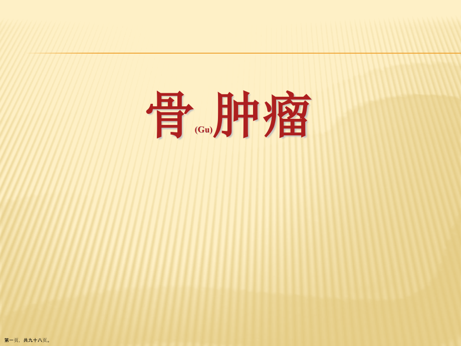 Click to edit Master title style,Click to edit Master text styles,Second level,Third level,Fourth level,Fifth level,11/7/2009,#,单击此处编辑母版文本样式,第二级,第三级,第四级,第五级,单击此处编辑母版标题样式,骨,(Gu),肿瘤,第一页,共九十八页。,第一,(Yi),节,概论,第二页,共九十八页。,骨肿瘤的发病率,38959,例骨肿瘤发病率及性质,原,(Yuan),发良性骨肿瘤,21691 55.7%,原发恶性骨肿瘤,10791 27.69%,瘤样病变,4369 11.3%,转移瘤,2108 5.4%,第三页,共九十八页。,原发,(Fa),良性骨肿瘤,骨软骨瘤 (,.,),骨巨细,(Xi),胞瘤(,.,),软骨瘤 (,.,),第四页,共九十八页。,原发,(Fa),恶性骨肿瘤,骨肉瘤,44.6%,软骨肉瘤,14.2%,纤维肉瘤,.,骨髓瘤,尤文肉瘤,.,恶性,(Xing),骨巨细胞瘤,第五页,共九十八页。,发病年龄,幼儿,软骨母,(Mu),细胞瘤,少年 骨肉瘤、骨软骨瘤,成人 骨巨细胞瘤,老年 转移性骨肿瘤,第六页,共九十八页。,部位,股骨下端、胫骨上端(恶性),脊柱、骨盆、肩胛骨(转移性骨肿瘤),膝关节和,(He),肘关节以远骨骼(良性),第七页,共九十八页。,骨肿瘤的临床表现,(Xian),疼痛,良性肿瘤一般无痛或轻度。,疼痛是恶性肿瘤早期症状,进持性加重。,休息时疼痛反而加重,考虑恶性病损。,夜间疼痛是恶性骨肿瘤的重要特征。,第八页,共九十八页。,肿胀,根,(Gen),据肿瘤的性质、部位不同,,骨肿瘤的肿胀程度不同。,损伤,损伤可诱发骨肿瘤症状的出现,或加重骨肿瘤症状,。,第九页,共九十八页。,第十页,共九十八页。,局部检,(Jian),查,骨肿瘤边界、质地、活动度和光滑程度,2,疼痛、压痛和肿胀程度,3,表面皮肤发红发热、浅表静脉怒张、动脉搏动,第十一页,共九十八页。,骨肿瘤的,(De),诊断必须依靠,临床、线片、病理,三结合,生化检查,血常规血钙血磷碱性磷酸酶,酸性磷酸酶总蛋白浓度,活组织检查,穿针活检切开活检,第十二页,共九十八页。,实验室检查,HB,下降,血沉加快,碱性磷酸酶增高,酸性磷酸酶,血清总蛋白增加,血沉和碱性磷酸酶可作为,观察骨肿瘤疗效的动态指,(Zhi),标,第十三页,共九十八页。,病理学检,(Jian),查,常规组织学切片,组织化学检查,免疫组织化学,第十四页,共九十八页。,骨肿,(Zhong),瘤与,X,线病理,第十五页,共九十八页。,有些肿瘤产生类骨或肿瘤骨称为,反,(Fan),应骨,。,在,X,线片上表现为,高密度区。,第十六页,共九十八页。,有些骨肿瘤破骨或使骨吸,(Xi),收,在,X,线片上表现为,低密度区,第十七页,共九十八页。,骨膨胀性,(Xing),改变,第十八页,共九十八页。,葱皮样改,(Gai),变,骨肿瘤刺激骨膜是阶段性,使骨膜阶段性形成板层状新骨,,在,X,片上,(Shang),表现为葱皮样改变。,第十九页,共九十八页。,G,表示骨肿瘤的细胞学特征、分化程度,发生方式及,X,片表现。,T,表示骨肿瘤侵袭范,以肿瘤囊室和间,室为分界,(Jie),。,M,表示骨肿瘤有无转移。,外科,(Ke),G T M,分期,第二十页,共九十八页。,建立一个肿瘤分期体系以利于判断预后,根据不同分期合理选择外科手术方案,提出,(Chu),辅助性治疗意见,外科,分,(Fen),期的意义,第二十一页,共九十八页。,骨肿,(Zhong),瘤治疗,1,手术切除辅助化学灭活、冷冻处理、,甲烯酸甲酯处理、热疗。,2,化学治疗,3,放射治疗,4,免疫治疗,5,中医中药治疗,第二十二页,共九十八页。,第二节,良性骨肿,(Zhong),瘤,第二十三页,共九十八页。,骨,(Gu),瘤(,Osteoma,),颅骨或下颌骨象牙,(Ya),样致密骨性肿块,无症状者无需治疗,手术治疗:有症状者行基底广泛切除,第二十四页,共九十八页。,内,(Nei),生软骨瘤,好发部位:手、足的管状骨,症状:一般无症状,常因,(Yin),局部肿胀或病理性骨折,X,线表现:指骨膨胀、蜂窝状吸收、钙化,第二十五页,共九十八页。,骨,(Gu),样骨,(Gu),瘤(,Osteoid osteoma,),好发部位:长管状骨(下肢为主),好发年龄:,7,25,岁,男:女,3,:,1,持续性疼痛,夜间痛为主,阿司匹林可止痛,X,线:瘤巢(小于,1.5cm,),+,反应,(Ying),骨,有自限性愈合倾向,无症状者无需治疗,持续性疼痛者行手术切除,第二十六页,共九十八页。,第二十七页,共九十八页。,第二十八页,共九十八页。,骨,(Gu),软骨,(Gu),瘤(,Osteochondroma,),单发性,(Xing),骨软骨瘤,外生骨疣,临床常见,遗传性多发性骨软骨瘤,亦称为多发性 外生骨疣,遗传性畸形性软骨发育异常,第二十九页,共九十八页。,第三十页,共九十八页。,第三十一页,共九十八页。,多发,(Fa),性骨软骨瘤临床特点,好发年龄:,20,岁以下,好发部位:长骨干骺端,无自觉症状,偏心性生长硬性包,(Bao),块,第三十二页,共九十八页。,第三十三页,共九十八页。,第三十四页,共九十八页。,第三十五页,共九十八页。,第三十六页,共九十八页。,第三十七页,共九十八页。,第三十八页,共九十八页。,第三十九页,共九十八页。,第四十页,共九十八页。,骨软,(Ruan),骨瘤的,X,线特点,有蒂(窄颈、顶部较宽)型,无蒂(基底宽而扁)型,骨性突起与干骺端相连,软骨帽,(Mao),、皮质骨、松质骨三部分,第四十一页,共九十八页。,骨软,(Ruan),骨瘤合并症,骨折,骨畸形,血管,(Guan),损伤,神经损伤,滑膜囊肿形成,恶性变,第四十二页,共九十八页。,骨软,(Ruan),骨瘤的治疗,无症状者无需治疗,产生症状者手术切除,切除范围:骨膜、软骨帽、骨皮质,(Zhi),、基底,周围正常骨质,第四十三页,共九十八页。,骨,(Gu),巨细胞瘤,第四十四页,共九十八页。,第四十五页,共九十八页。,第四十六页,共九十八页。,第四十七页,共九十八页。,骨巨细胞瘤,(Liu),的,X,线特征,侵及骨骺及干