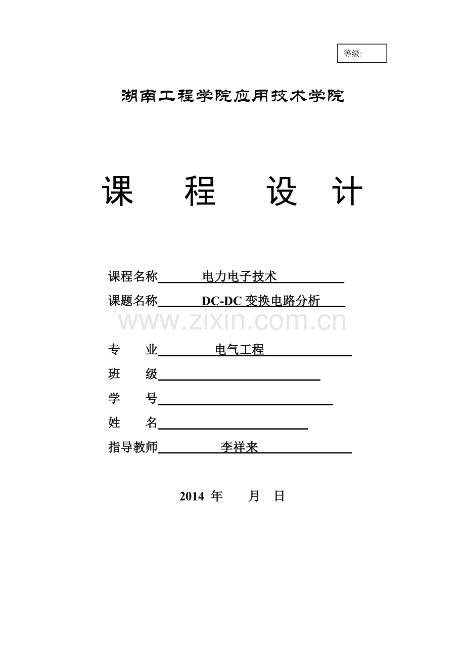 降压斩波电路(Buck Chopper)的设计与分析是接下来课程设计的主要任务。