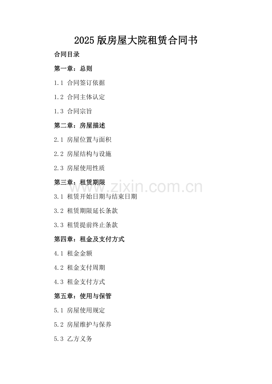 2025版房屋大院租赁合同书