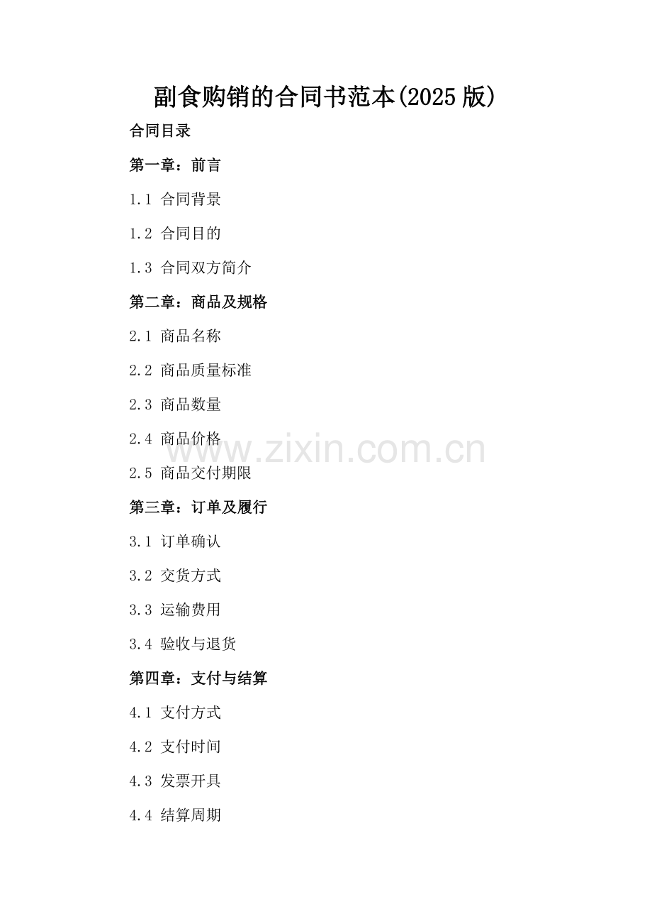 通过本合同的签订,明确甲乙双方在副食购销过程中的权利和义务,确保商品质量,按时交付,共同发展。