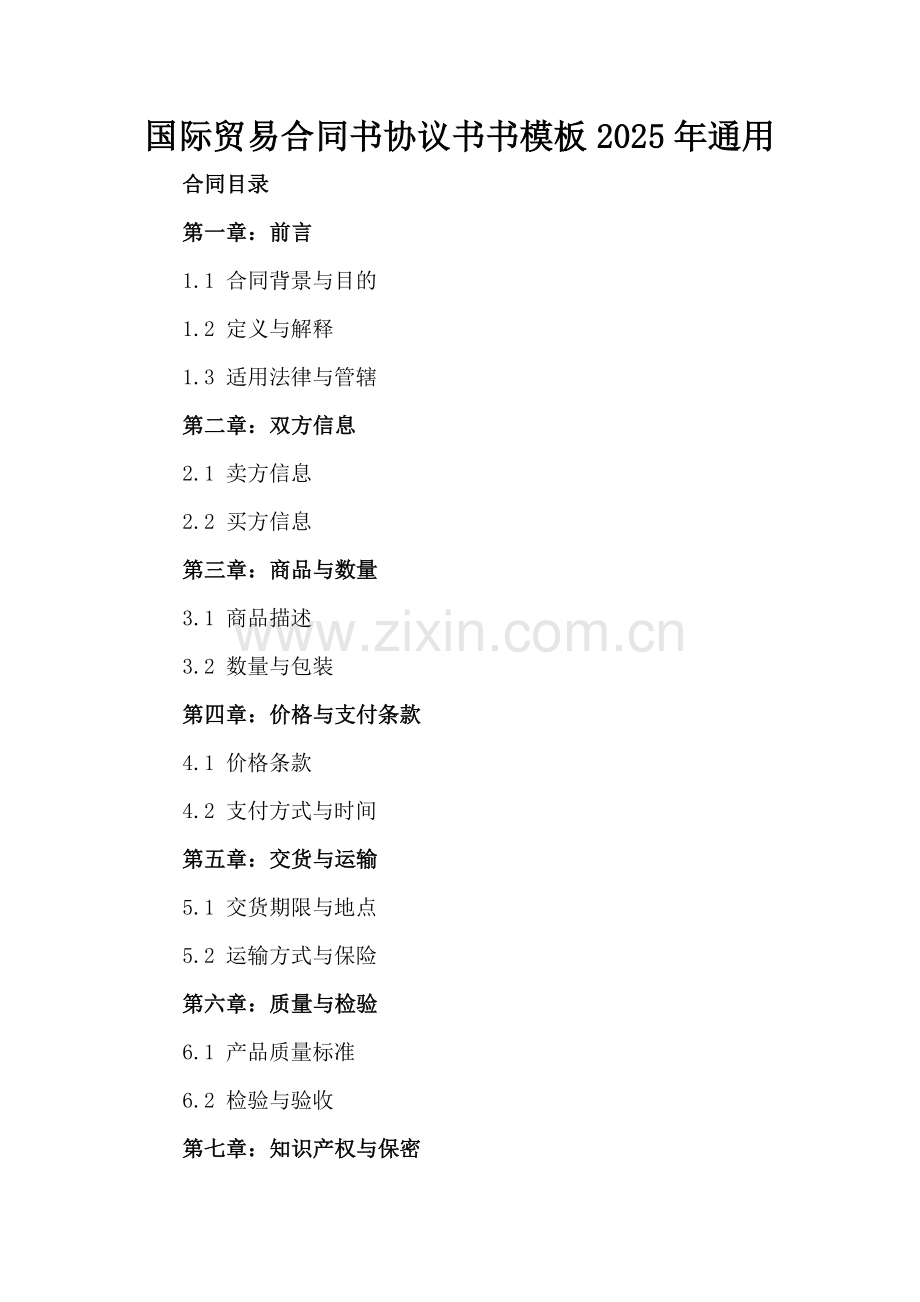 国际贸易合同书协议书书模板2025年通用