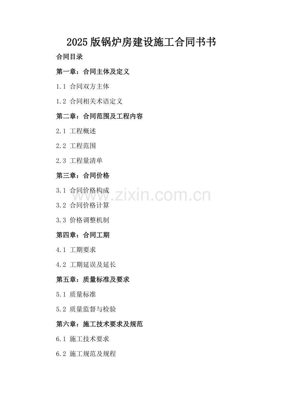 2025版锅炉房建设施工合同书书