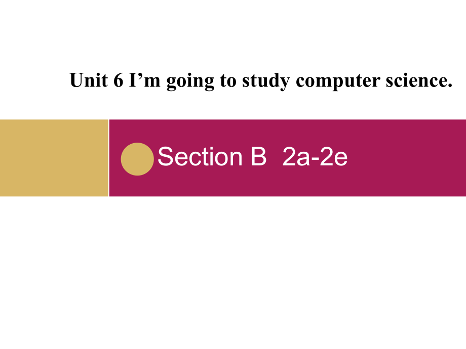 ,-,*,-,*,Section B 2a-2e,Unit 6 Im going to study computer science.,Lead-in,My New Years Resolution,Next year,Im going,to,exercise at least 20,Minutes every day.But,I didnt keep it.,Lead-in,My New Years Resolution,Did you make any resolutions last year?,Were you able to keep them?,Why or why not?,R,ead the passage.Put the sentences A-D in the correct places.,Skimming,A:These are about making yourself a,better person.,B:For example,a student may have to,find more time to study.,C.There are good reasons for this.,D.The start of the year is often a time,for making resolutions.,R,ead the passage.Put the sentences A-D in the correct places.,Skimming,方法指导:,1.,首先,阅读这四个句子,掌握其意思。,2.,然后,再次阅读每个段落,重点阅读,每个空格前后句子的意思。,3.,根据上下文意来确定空格处应填的句子。,R,ead the passage.Put the sentences A-D in the correct places.,Skimming,A:These are about making yourself a,better person.,B:For example,a student may have to,find more time to study.,C.There are good reasons for this.,D.The start of the year is often a time,for making resolutions.,Answers:D A B C,R,ead the passage again and match each paragraph 1-3 with its main purpose.,Reading,Para 1:To question the idea of making,resolutions,Para 2:To give the meaning of,resolution,Para 3:To discuss the different kinds of,resolutions,R,ead the passage again and match each paragraph 1-3 with its main purpose.,Reading,方法指导:,1.,先读这三个主题的意思,带着问题去读短文。,2.,通读每个段落,理解这个段落所讲的主要意思。,3.,在相关段落中划出相关的依据,根据依据确定,每个段落主要意思。,R,ead the passage again and match each paragraph 1-3 with its main purpose.,Reading,Para 1:To question the idea of making,resolutions,Para 2:To give the meaning of,resolution,Para 3:To discuss the different kinds of,resolutions,Read the passage again.Then answer the questions with short sentences.,Careful reading,resolution,What,When,How,Why,How many,Read the passage again.Then answer the questions with short sentences.,Careful reading,1.What is a resolution?,2.When do people usually make resolutions?,3.How can people remember their resolutions?,4.Why do people usually make resolutions?,5.How many kinds of resolutions does the,writer talk about?,Read the passage again.Then answer the questions with short sentences.,Careful reading,resolution,What,When,How,Why,How many,promises you make to yourself,at the beginning of the year,write down,improve,their lives,three,Retell the passage,looking at he mind-map,.,Retelling,resolution,What,When,How,Why,How many,promises you make to yourself,at the beginning of the year,write down,improve,their lives,three,2e,Find these phrases in the passage.Then write their own sentences with them.,have to do with,make promises,have in common,write down,For this reason,take up,Homework,Write about the resolutions you made this year and hoe well it goes.,