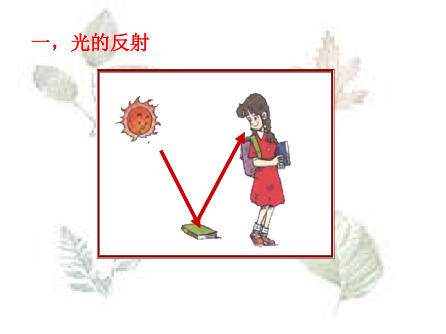 ,*,单击此处编辑母版标题样式,单击此处编辑母版文本样式,第二级,第三级,第四级,第五级,*,单击此处编辑母版标题样式,单击此处编辑母版文本样式,第二级,第三级,第四级,第五级,*,单击此处编辑母版标题样式,单击此处编辑母版文本样式,第二级,第三级,第四级,第五级,*,单击此处编辑母版标题样式,单击此处编辑母版文本样式,第二级,第三级,第四级,第五级,*,单击此处编辑母版标题样式,单击此处编辑母版文本样式,第二级,第三级,第四级,第五级,*,单击此处编辑母版标题样式,单击此处编辑母版文本样式,第二级,第三级,第四级,第五级,*,单击此处编辑母版标题样式,单击此处编辑母版文本样式,第二级,第三级,第四级,第五级,*,单击此处编辑母版标题样式,单击此处编辑母版文本样式,第二级,第三级,第四级,第五级,*,单击此处编辑母版标题样式,单击此处编辑母版文本样式,第二级,第三级,第四级,第五级,*,单击此处编辑母版标题样式,单击此处编辑母版文本样式,第二级,第三级,第四级,第五级,*,单击此处编辑母版标题样式,单击此处编辑母版文本样式,第二级,第三级,第四级,第五级,*,单击此处编辑母版标题样式,单击此处编辑母版文本样式,第二级,第三级,第四级,第五级,单击此处编辑母版标题样式,单击此处编辑母版文本样式,第二级,第三级,第四级,第五级,*,单击此处编辑母版标题样式,单击此处编辑母版文本样式,第二级,第三级,第四级,第五级,*,单击此处编辑母版标题样式,单击此处编辑母版文本样式,第二级,第三级,第四级,第五级,*,单击此处编辑母版标题样式,*,单击此处编辑母版文本样式,第二级,第三级,第四级,第五级,单击此处编辑母版标题样式,*,*,单击此处编辑母版文本样式,第二级,第三级,第四级,第五级,单击此处编辑母版标题样式,*,单击此处编辑母版文本样式,第二级,第三级,第四级,第五级,单击此处编辑母版标题样式,*,单击此处编辑母版文本样式,第二级,第三级,第四级,第五级,单击此处编辑母版标题样式,单击此处编辑母版文本样式,第二级,第三级,第四级,第五级,*,单击此处编辑母版标题样式,单击此处编辑母版文本样式,第二级,第三级,第四级,第五级,*,单击此处编辑母版标题样式,单击此处编辑母版文本样式,第二级,第三级,第四级,第五级,*,单击此处编辑母版标题样式,单击此处编辑母版文本样式,第二级,第三级,第四级,第五级,*,光 的 反 射,一,光的反射,光的反射的有关概念,1,.入射光线(,A,O),2.,入射点,(O),3.,法线,(ON):,过,O,作反射面,垂线,(虚线),4.,反射光线(,OB,),5.,入射角:,入射光线与,法线,的夹角,6.,反射角:,反射光线与,法线,的夹角,(一点、两角、三线),O,B,N,A,i,r,小提示,:画图时,注意入射光线和反射光线用带,箭,头,的,实线,,法线用,虚线,,反射面的背面要画上,斜线,。,实验:探究光的反射规律,猜一猜:,三线有何关系?,两角有何关系?,i,O,A,B,N,r,二,光的反射定律,入射角,反射角,请将你得到的数据填入下表,九年级物理中考,-,光的反射 实验(,flash,)课件全国通用,.exe,反射光线、入射光线和法线在同一平面内,光的反射定律,反射光线和入射光线分居法线两侧,反射角等于入射角,1.,(,三线共面,),2.,(,法线居中,),3.,(,两角相等,),练习:画反射光线,光的反射作图方法:,1,、画出法线(虚线);,2,、量出入射角大小;,3,、根据反射角与入射角相等,作出反射光线(标箭头)。,50,50,三,光路的可逆性,如果入射光线沿着原来反射光线的方向入,射,则反射光线会怎样?,在光的反射中,光路是可逆的,10,实验:光路可逆,涡阳 王桥 楚店,故事,:女富人擒贼,2,光的反射 分,两种反射,四,光的反射,镜面反射,漫反射,小提示:,镜面反射和漫反射都遵守反射定律。,镜面反射,漫反射,区别,:平行光入射到平面镜上,由于法线是平行的,,反射光也是平行的;平行光入射到粗糙的表面,由于,法线是不平行的,反射光也是不平行的。,联系,:无论是镜面反射还是漫反射都遵循光的反射定律。,光的反射种类,镜面反射,漫反射,13,讨论,1,、电影银幕用光滑的白布可以吗?应,该用什么样的布,为什么?,2,、黑板用久了会发生“反光”现象,同学们不,易看清黑板上的字,这是为什么?平常黑板发,生了什么反射?,14,五,光反射的应用,红宝石激光器,15,部分地区的卫星遥感图,人造卫星利用光的反射,在遥远的太空感知地面的矿藏和森林,估计农作物的产量,.,17,潜望镜,18,19,太阳灶,20,21,光纤传播原理,光纤通信是利用玻璃纤维对光的多次反射来传递信息的。,24,阳光照射强烈时,城市里建筑物的玻璃幕墙、釉面砖墙、,磨光大理石和各种涂料等装饰反射光线,明晃白亮、眩眼夺目,,形成了光污染。,这是深圳地王大厦和证券交易所的玻璃幕,看上去非常刺眼,这就是生活中的光污染,25,玻璃幕墙,你知道吗?,光污染实质上是一种,反射现象,镜面,26,光污染,光污染比较常见的是眩光。如汽车夜间行驶时产生的车灯光,电焊产生的强光会使人的视觉瞬间下降。大城市高层建筑的玻璃幕墙会产生很强烈的镜面反射,使局部地区温度升高,同时强烈的反射光使人双目难睁,影响车辆行驶和行人安全。,27,1,、如图,入射角是,50,,则反射角是,_,;入射光线与反射光线的夹角是,_,;,若改变入射光线的方向,使入射光线逐渐偏离法线,则反射光线将向法线,_ (,靠近偏离),六,练习,:看看谁做得又快又好,50,偏离,i,O,A,B,N,r,100,法线为,入射光线与反射光线的夹角,角平线,2,、有一