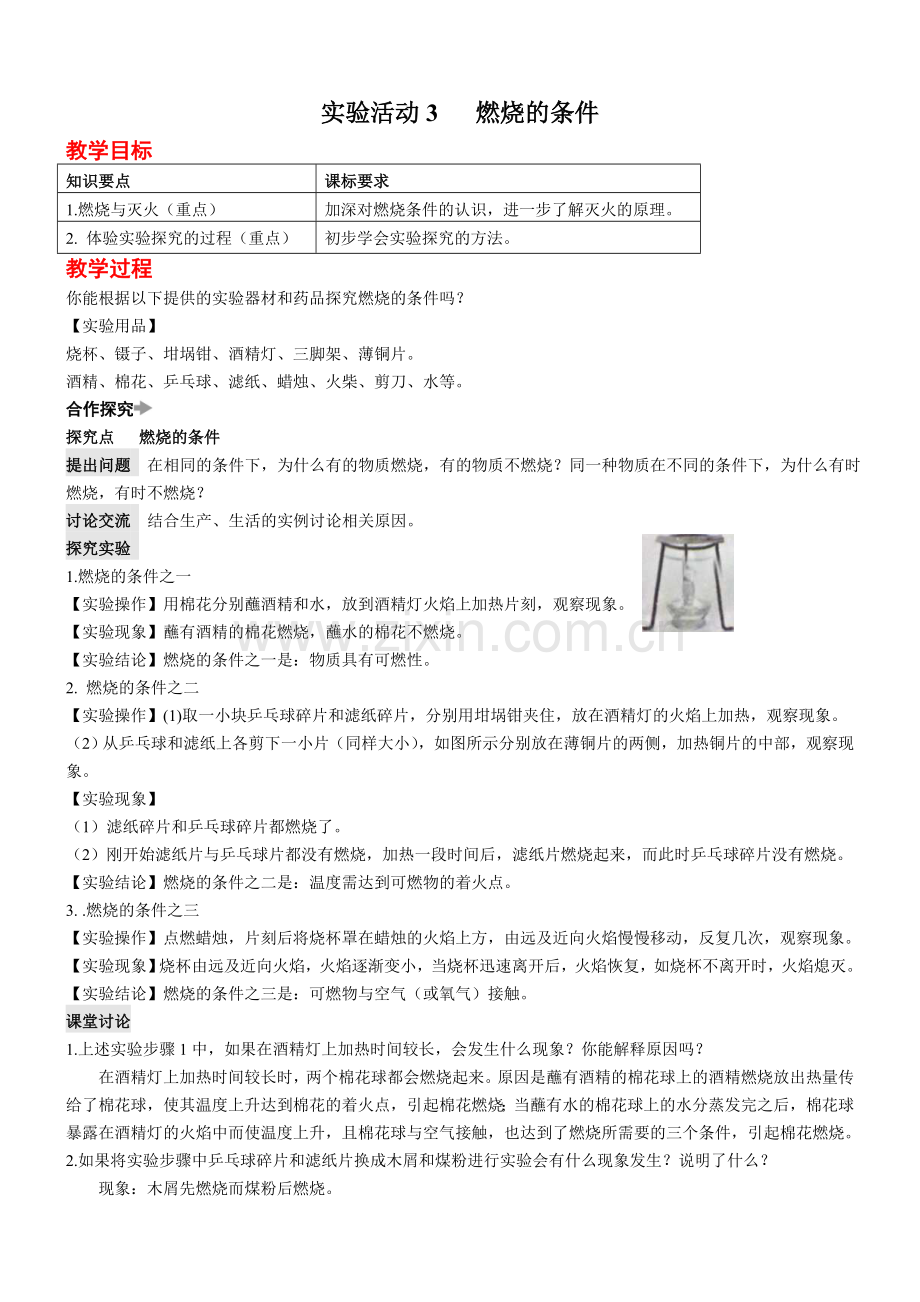 加深对燃烧条件的认识,进一步了解灭火的原理。