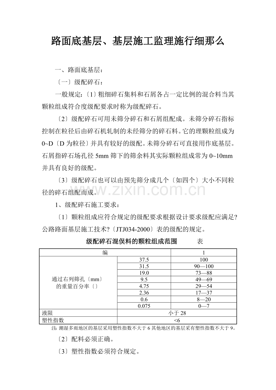 1、级配碎石施工要求: