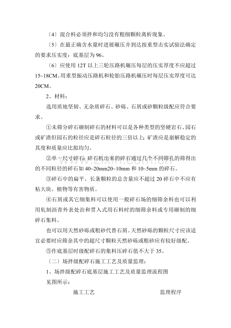 1、场拌级配碎石底基层施工工艺及质量监理流程图
