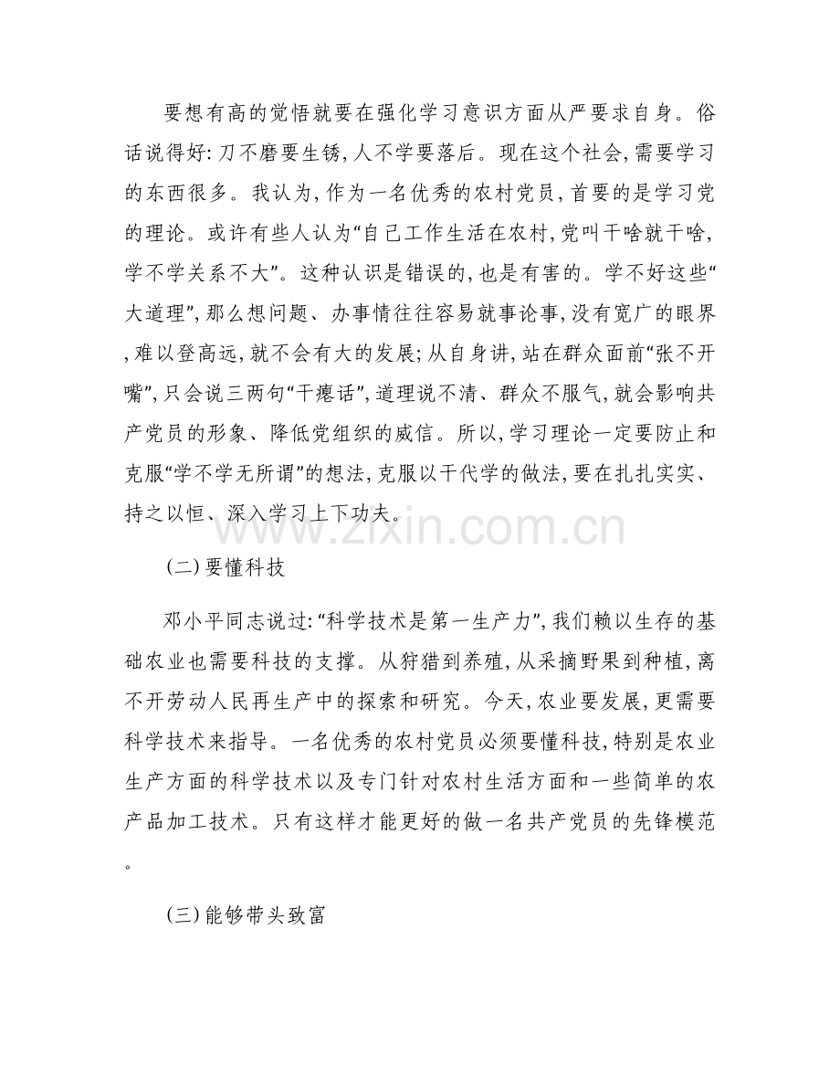 二、做一名优秀的农村党员要在提高自身能力和水平上下功夫