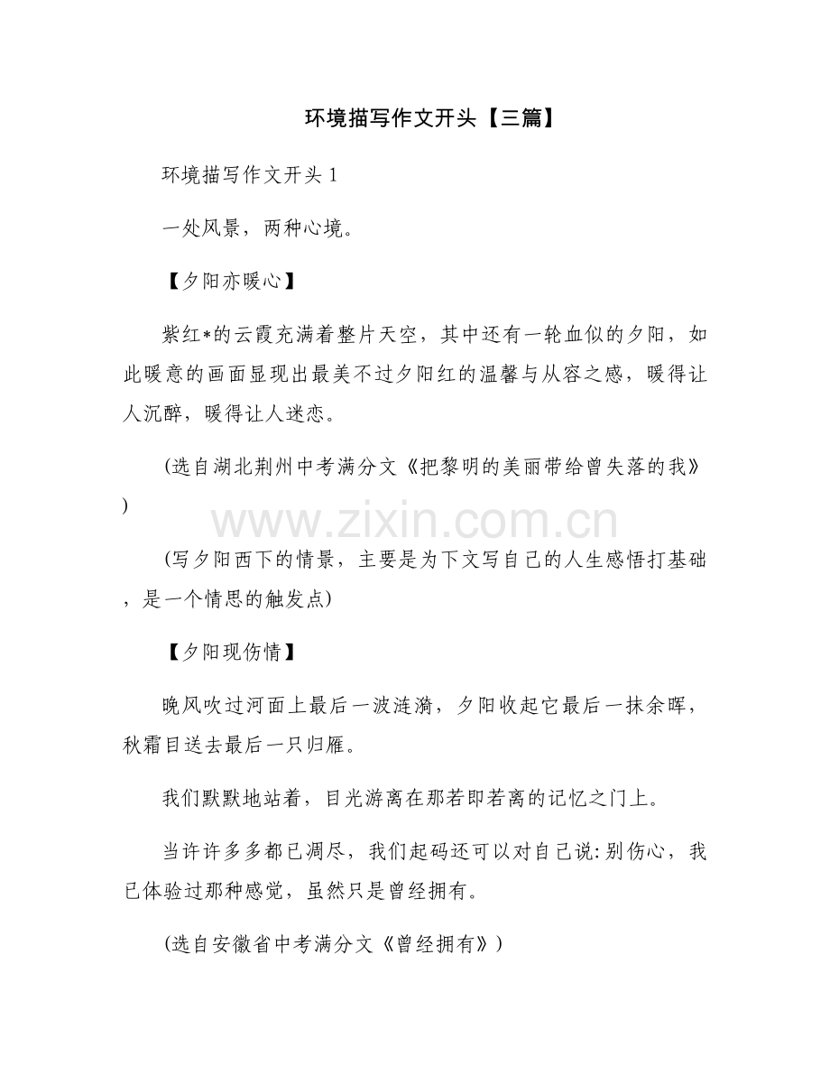 环境描写作文开头【三篇】