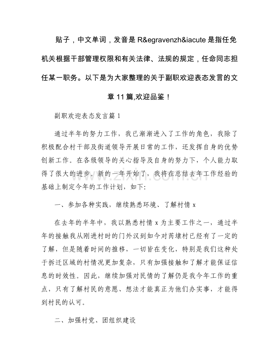 贴子,中文单词,发音是Rènzhí是指任免机关根据干部管理权限和有关法律、法规的规定,任命同志担任某一职务。以下是为大家整理的关于副职欢迎表态发言的文章11篇,欢迎品鉴!