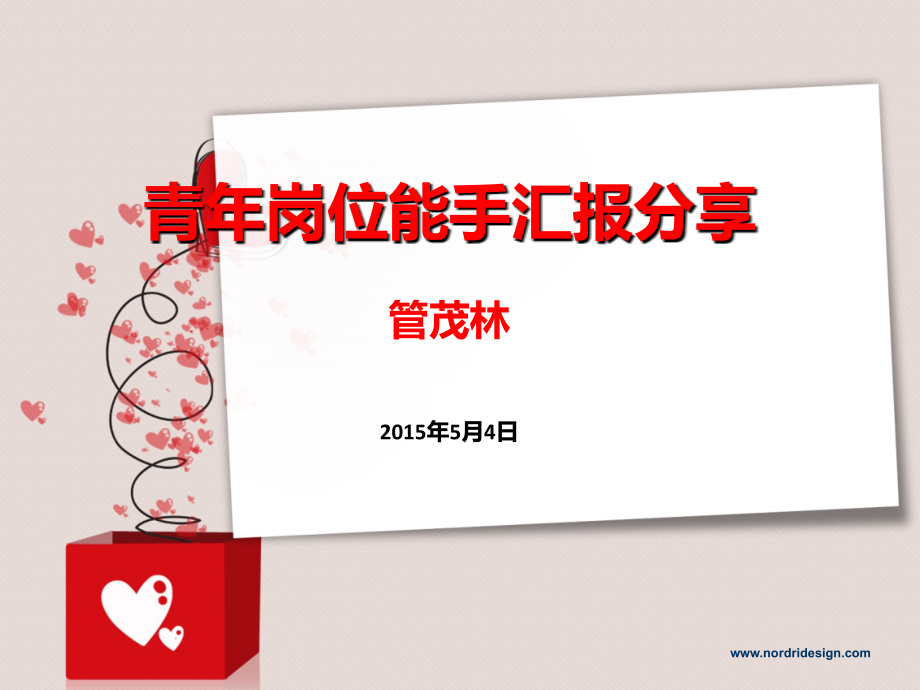 单击此处编辑母版标题样式,单击此处编辑母版文本样式,第二级,第三级,第四级,第五级,本作品采用,知识共享署名,-,非商业性使用,2.5,中国大陆许可协议,进行许可。,专业交流,模板超市,设计服务,NordriDesign,中国专业,PowerPoint,媒体设计与开发,本作品的提供是以适用知识共享组织的公共许可(简称“,CCPL”,或“许可”)条款为前提的。本作品受著作权法以及其他相关法律的保护。对本作品的使用不得超越本许可授权的范围。,如您行使本许可授予的使用本作品的权利,就表明您接受并同意遵守本许可的条款。在您接受这些条款和规定的前提下,许可人授予您本许可所包括的权利。,查看全部,青年岗位能手汇报分享,管茂林,2015,年,5,月,4,日,自我介绍,目录,一,主要工作业绩,二,编制和修订各项安全管理制度,做好各项安全教育培训,修订公司应急预案组织开展应急演练,创建职业卫生示范单位,积极开展安全标准化二级达标,1,2,4,3,5,你的一句提醒,可以避免一起安全事故,三,一、自我介绍,姓名,管茂林,性别,男,出生年月,1988,年,2,月,参加工作时间,2009,年,10,月,文化程度,大学,专业技术职称,注册安全工程师,工作单位及岗位,制造部安全员,按照法律法规和安全质量标准化体系要求,编制和修订了山推建友安全管理考核细则、职业安全健康规章制度、安全操作规程、职业病预防管理制度等,30,项安全管理制度,完善安全管理体系,做到有规可依、有章可循。,二、主要工作业绩,1,、编制和修订各项安全管理制度,根据公司生产特点、岗位工种、工作环境,编制有针对性的安全教育培训教材,对新进员工、特殊工种及外出人员进行安全教育培训,提高员工个人防护意识,对接触职业危害的人员讲解案例,消除职业病危害。,2,、做好各项安全教育培训,不失时机的开展各项活动,营造安全生产氛围;按照安全标准化要求进行全员安全培训,根据各车间生产特点分批组织观看安全警示教育片,取得较好效果。,提高特种作业人员安全技能,做好特种作业人员取证培训工作,要求公司所有特种作业人员必须取得特种作业操作证方可上岗作业,,2014,年组织电工、电焊工证件复审,45,人,叉车、电梯、行车工新取证,18,人。,对公司应急预案重新进行了修订,形成综合应急预案,1,个,专项应急预案,3,个,并邀请济南市应急预案专家组进行评审,顺利通过市安监局审核备案,同时组织员工进行应急预案演练,增强实战性。,3,、修订公司应急预案组织开展应急演练,6,月中旬至,9,月中旬为济南主汛期,为有效应对可能发生的天气灾害,组织抢险队,36,人开展防汛应急演练,进一步提高应急反应意识和能力,确保公司财产和人员安全。,定期开展安全联合检查,对全厂安全隐患进行检查,及时要求负责人整改,并按照隐患整改时限按时进行复查,做好安全检查闭环管理,,2014,年共查纠违章和隐患整改,365,余项次。,为更好的做好职业危害防护工作,每年进行现场职业危害因素点检测,做好职业危害防护措施;现场张贴职业危害告知卡,告知职业危害因素特性、危害及应急措施,并配备应急设备。,4,、创建职业卫生示范单位,根据职业卫生基础建设,10,个大项目,,60,个子项目内容,健全职业卫生管理机构,明确职责分工,建立职业卫生管理档案,6,个,,完善职业危害人员档案,编制职业卫生防护管理制度,改善车间作业环境,定期进行职业危害因素检测,从而有效杜绝职业病,此项工作顺利通过济南市安监局职业卫生调研组年度审核,。,为提高安全管理水平,推进安全标准化精细化管理,邀请专家组来公司检查指导工作并进行安全标化专题培训,对查出的,361,条问题制定工作计划,层层落实责任,全部进行整改。,5,、积极开展安全标准化二级达标,通过开展安全标准化达标,现场,“,6S,”,管理进一步提高。,通过开展机械制造生产企业安全生产标准化二级达标工作,使公司安全管理模式大为改观,安全生产成为全体员工的自觉行为,达到了全员参与的目的;企业生产经营呈现出安全、环保、优质、低耗的良性循环局面,安全标准化管理、环保职业健康保护取得了明显成效。,三、你的一句提醒,可以避免一起安全事故,20,世纪,40,年代,杜邦公司提出了,“,所有事故都是可以防止的,”,理念,而这个理念的基础就是杜邦公司从,1912,年开始的安全数据的统计工作;,90%,以上的事故是由于人的因素引起,大量的统计数据包括所有的事故分析,都支持了这个结论。说明,“,人是最危险的,人又是最重要的,”,,体现了矛盾的对立统一。,因此,杜邦公司把所有的安全目标定为零,包括,零伤害、零职业病和零事故,。他们有严密的安全原则和必胜的安全信念,尽力斩断,“,事故连,”,的每一个环节,达到工作时比在家里还要安全十倍的理想境界。我公司依据本质安全理论,也将安全目标设定趋向于零。,从杜邦公司抽取的随机样本(左图),可以分析出在事故发生中:,人的因素占到,90%,,,机械设备因素占,5%,,,环境因素占,2%,,,管理因素占,3%,,,因此,安全工作汇报的再多,做的再多,保证不了建友员工的身体健康都等于零,安全管理实行一票否决制,安全的关键是大家有没有安全意识,能不能时时刻刻遵守安全规章制度。,公司每一条安全规章制度都是血的教训,生命只有一次,肢体没有配件,既不能伤,也不能亡,,为了美好生活,为了家庭美满,,遵守公司安全规章制度,提高自身安全意识。,公