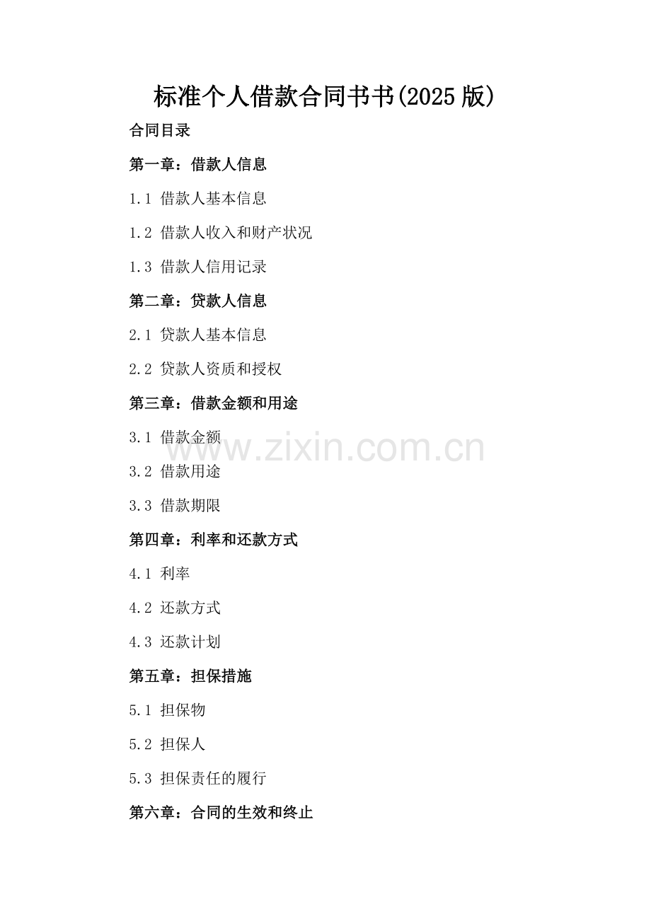 标准个人借款合同书书(2025版)