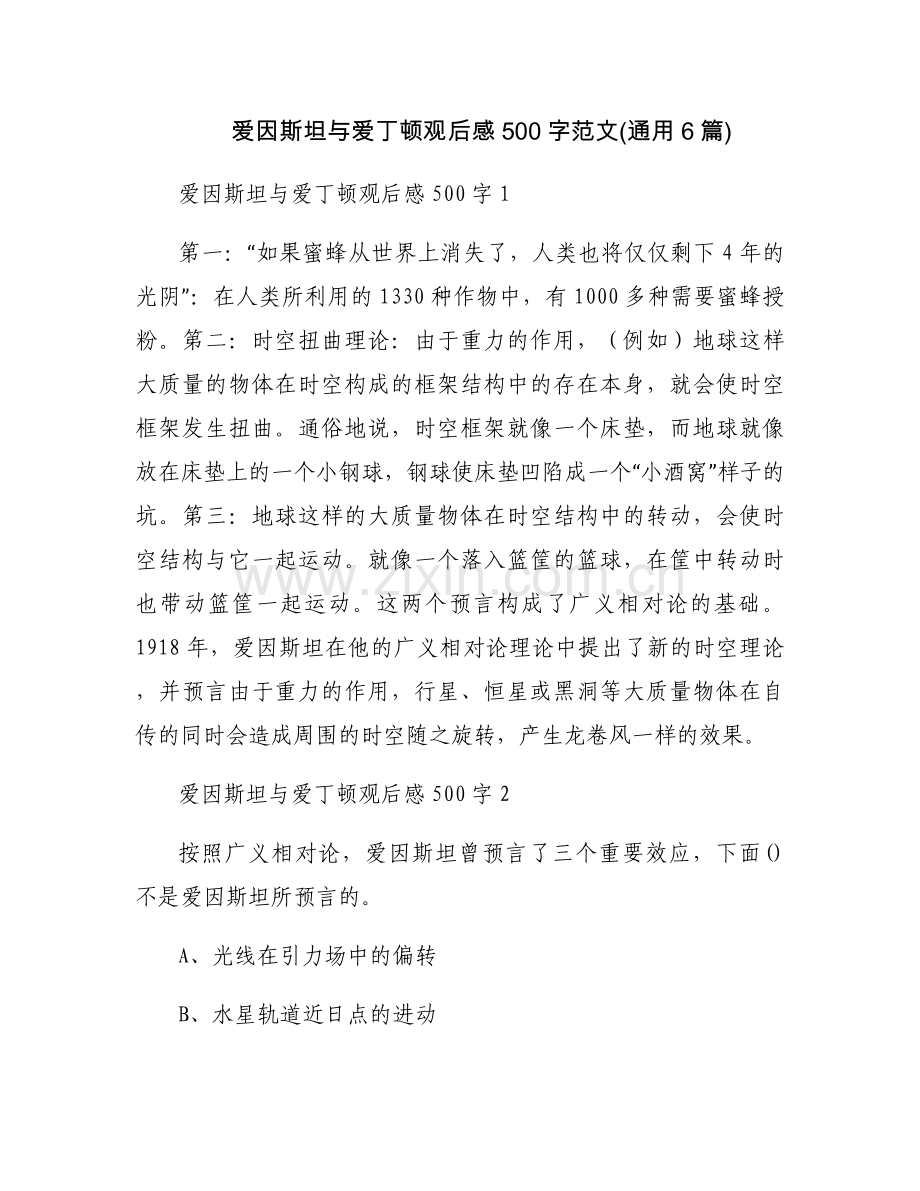 爱因斯坦与爱丁顿观后感500字范文(通用6篇)