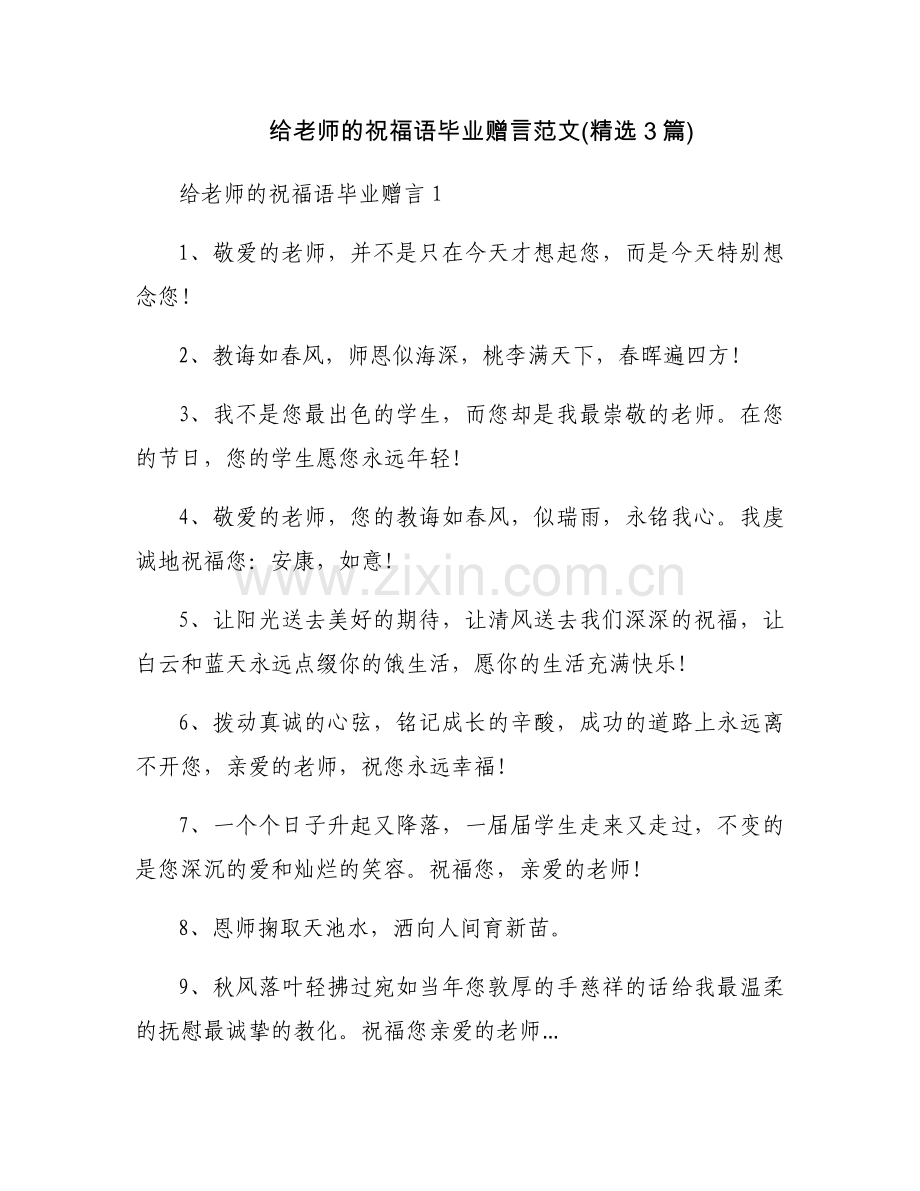 给老师的祝福语毕业赠言范文(精选3篇)