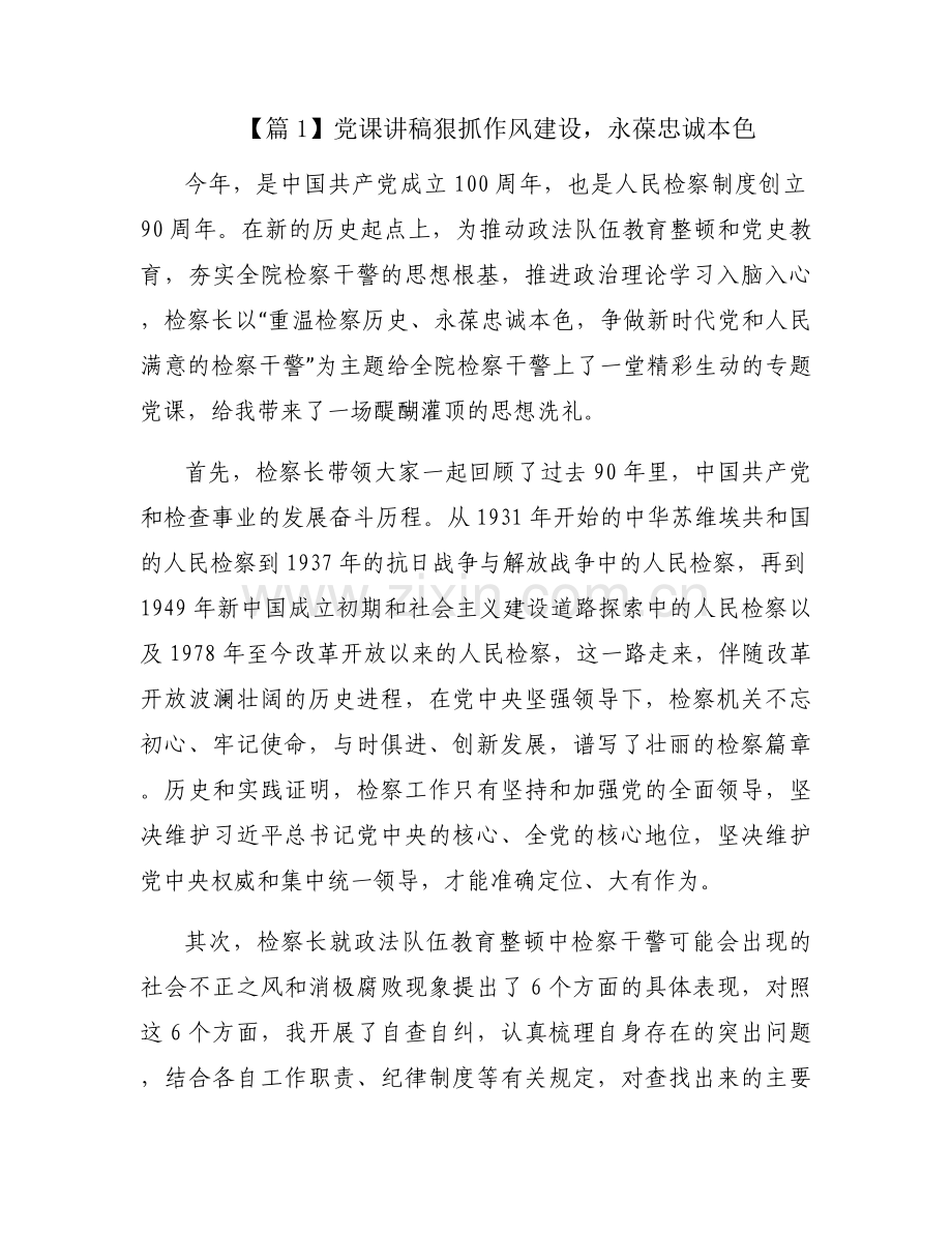 【篇1】党课讲稿狠抓作风建设,永葆忠诚本色