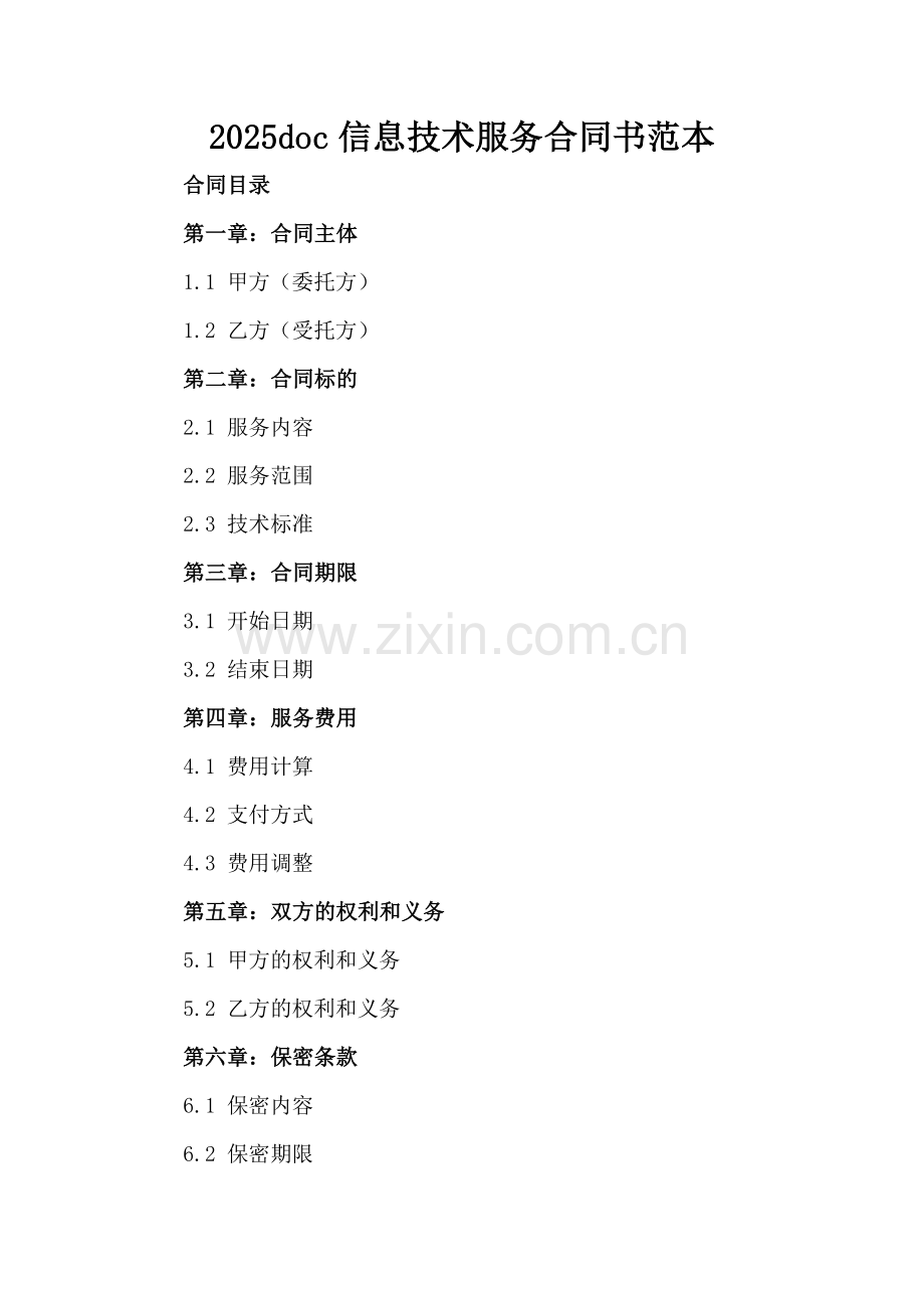 乙方向甲方提供的信息技术服务的总费用为人民币__________元(大写:__________________________元整)。