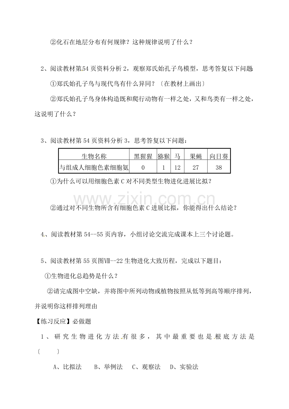 2、阅读教材第54页资料分析2,观察郑氏始孔子鸟模型,思考答复以下问题: