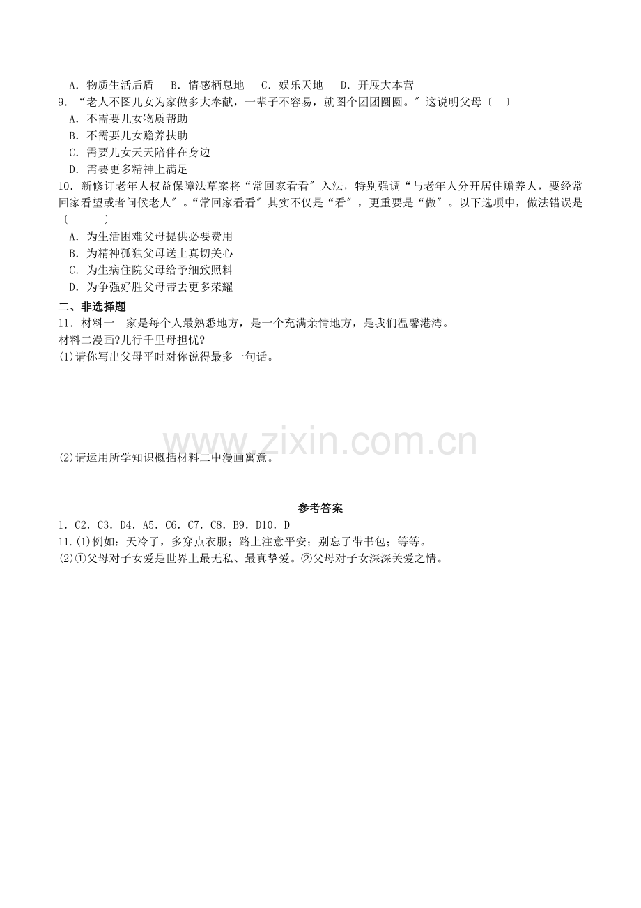 11.材料一 家是每个人最熟悉地方,是一个充满亲情地方,是我们温馨港湾。