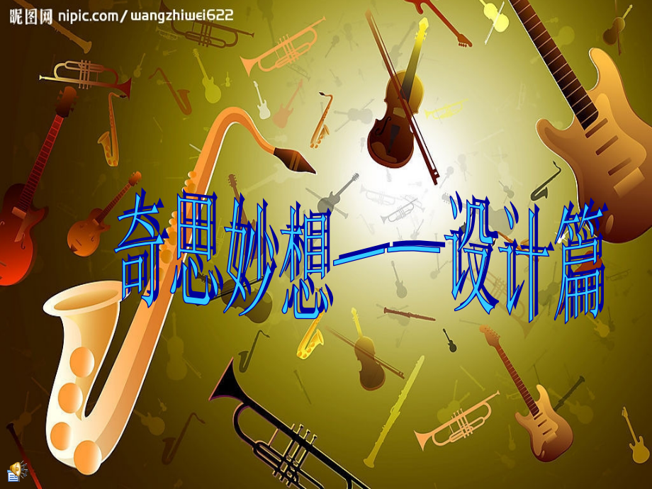 单击此处编辑母版标题样式,单击此处编辑母版文本样式,第二级,第三级,第四级,第五级,#,奇思妙想,设计篇,教学目标:,1、会搜集和整理资料,能预测结果并进行验证。,2、掌握有关声音的基础知识。,3、会动手制作、改进并演奏简单乐器。,各种各样的乐器,骨笛:世界上最早的乐器,古琴:入选联合国教科文组织“人类口头与非物质文化遗产代表作”名录,编钟:中国古代的打击乐器,我国古曲,流水,被录在美国“航天者”号太空船携带的一张镀金唱片上,于,1977年8月22日,发射到外太空。,1、乐器是怎么发出声音的?,声音是由于物体的,振动,产生的。,2、乐音和噪音怎么区分呢?,振动有规则的、有准确高度的声音叫,乐音,。,振动无规则的、无固定音高或音高听起来不明显的声音称为,噪声,。,想一想,你要做一个什么样的小乐器?,知识点练习,1、声音是由物体的()产生的。,2、振动的有规则的、有准确高度的声音叫()。,3、世界上最早的乐器是(),4、我国古曲 被录在美国航天者号太空船携带的一张镀金唱片上。,振动,乐音,骨笛,流水,