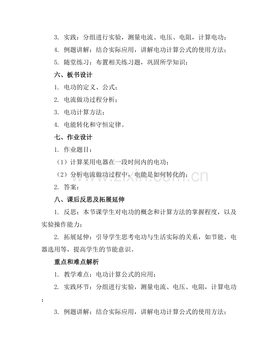 5. 课后反思及拓展延伸:关注学生对电功概念和计算方法的掌握程度,以及节能意识的培养。