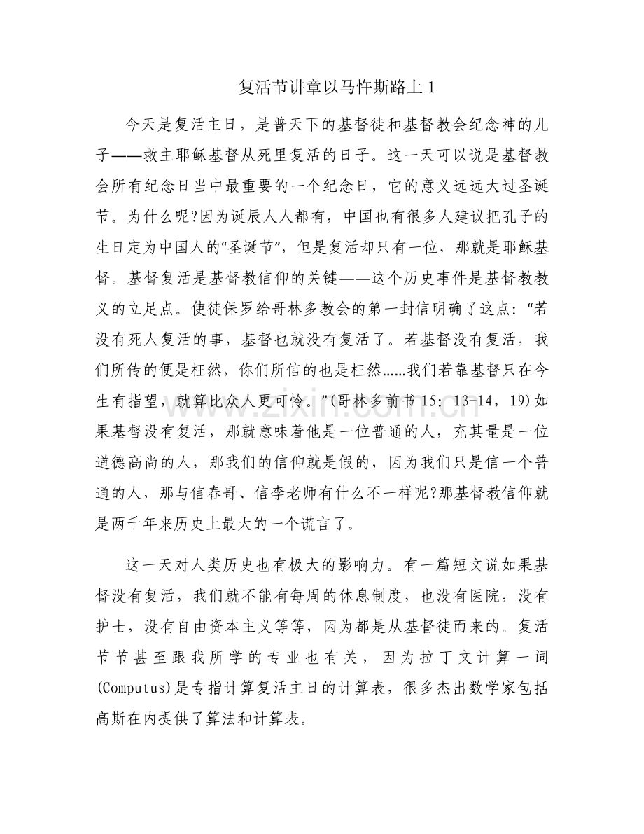 在这纪念主复活的日子当中,愿我们都能够像往以马忤斯去的两个门徒一样,有那样美好的分享生活,得到耶稣复活的生命!更愿主耶稣复活的喜乐来代替我们的忧愁,复活的盼望取代我们生命里的种种失望。耶稣复活了!耶稣复活了!阿门!