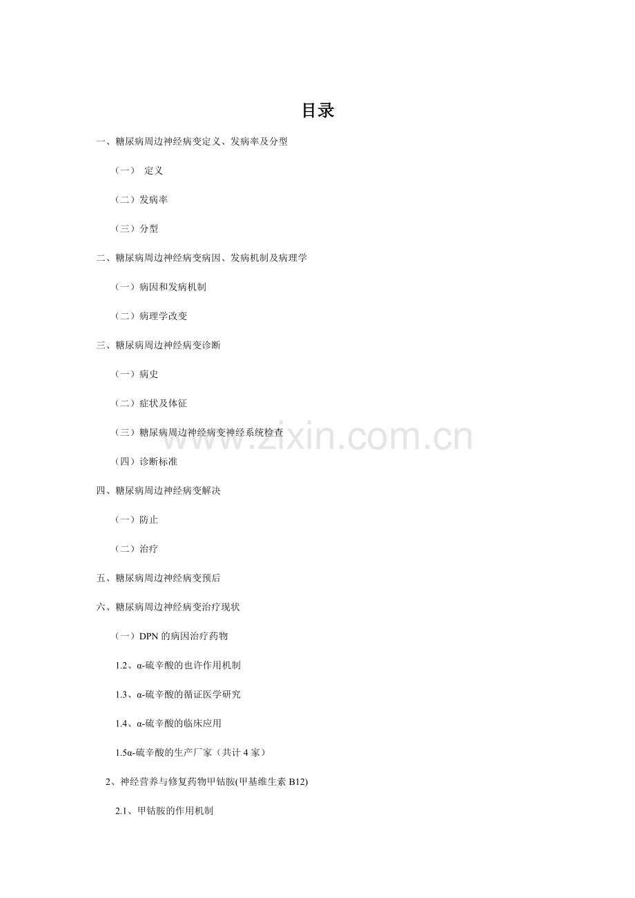 综合以上信息,糖尿病治疗药物有其非常广阔的市场,但市场竞争也非常惨烈,目前,大多数公司把重要的精力都投入到了治疗糖尿病用药剂型的改变及新药的研发上面,市面上的药物,治疗糖尿病的近期效果较好,远期效果较差,这是由于他们忽略了糖尿病并发症的危害性,其实糖尿病自身并不可怕,可怕的是血糖控制不好,而引发的并发症的危害是极大的。然而,在糖尿病并发症中致残率最高的就是糖尿病周边神经病变,再加上其发病率之高,随之而来的危害也是极大的,在这个鱼龙混杂的市场当中,针对糖尿病的任何并发症,降糖治疗主线。所以我们可以考虑往这个方面做一下研发,是既能有效的控制血糖,又可以营养神经的药物,促进神经再生的药物。