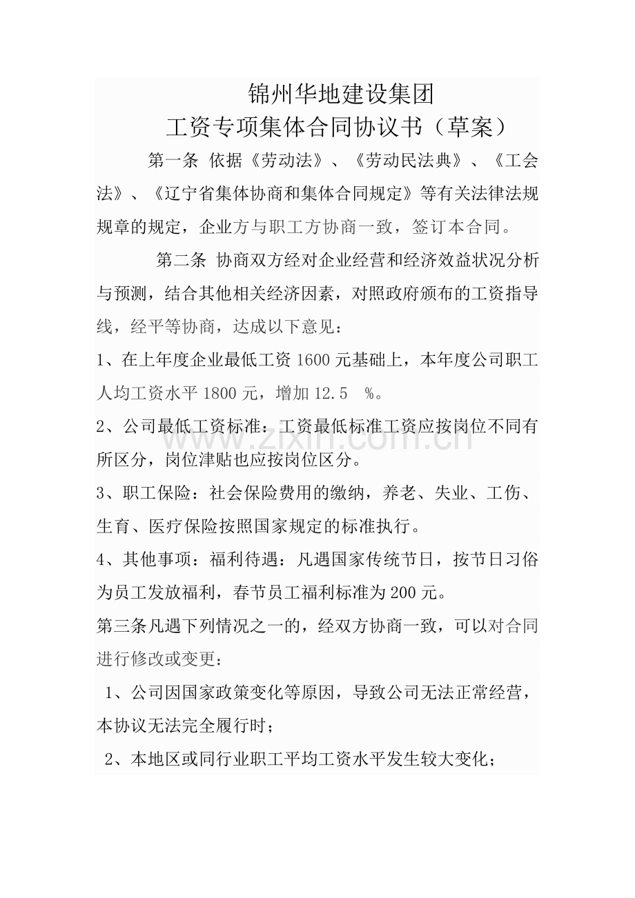 第一条 依据《劳动法》、《劳动民法典》、《工会法》、《辽宁省集体协商和集体合同规定》等有关法律法规规章的规定,企业方与职工方协商一致,签订本合同。