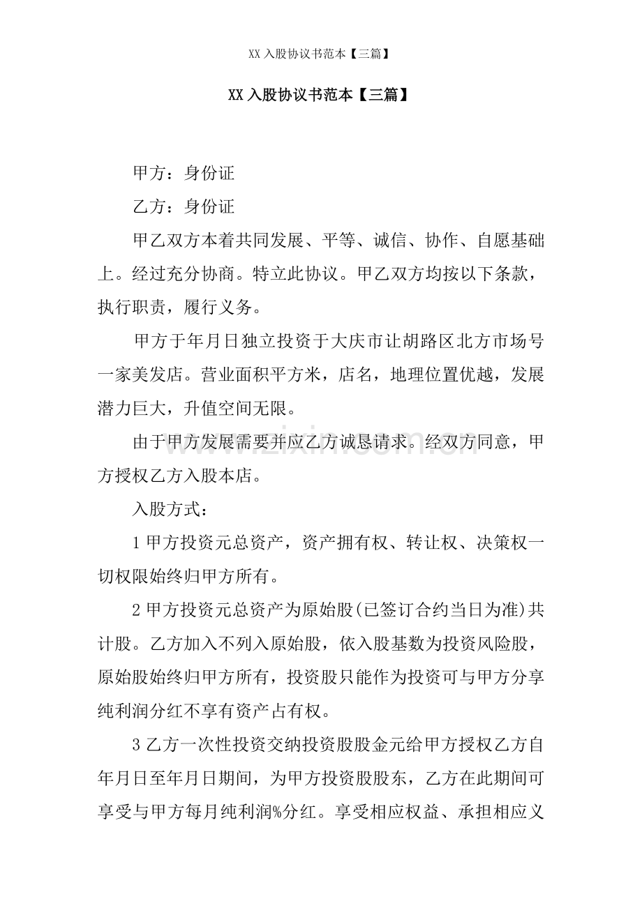 2甲方投资元总资产为原始股(已签订合约当日为准)共计股。乙方加入不列入原始股,依入股基数为投资风险股,原始股始终归甲方所有,投资股只能作为投资可与甲方分享纯利润分红不享有资产占有权。