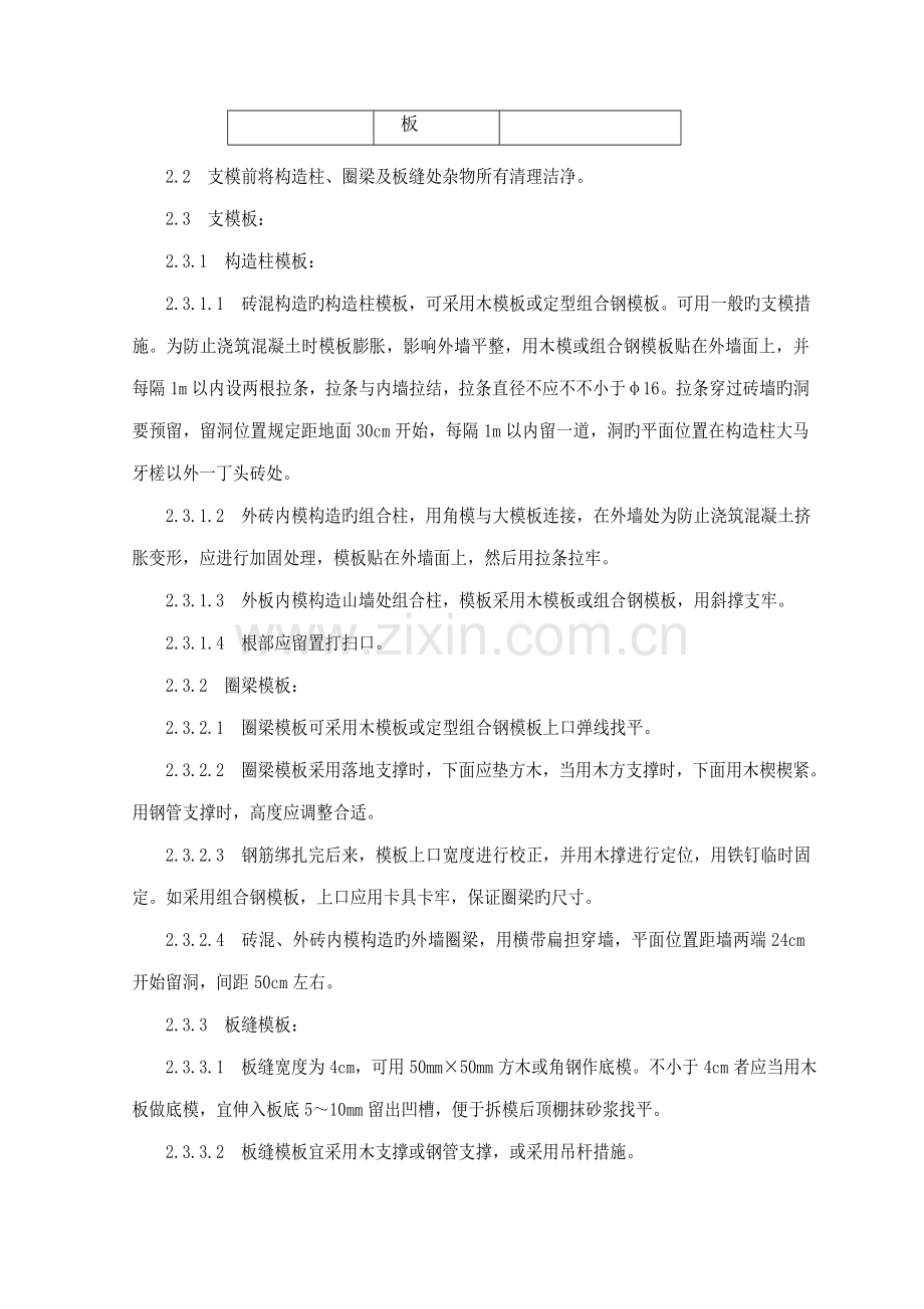 2.2 支模前将构造柱、圈梁及板缝处杂物所有清理洁净。