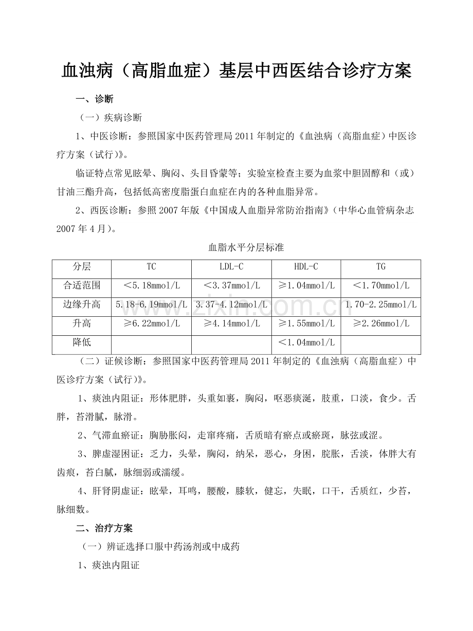 血浊病(高脂血症)基层中西医结合诊疗方案