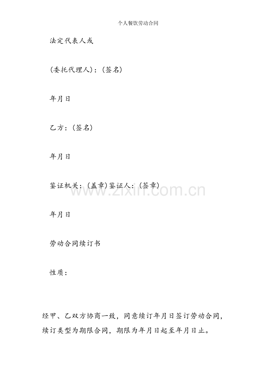 经甲、乙双方协商一致,同意续订年月日签订劳动合同,续订类型为期限合同,期限为年月日起至年月日止。