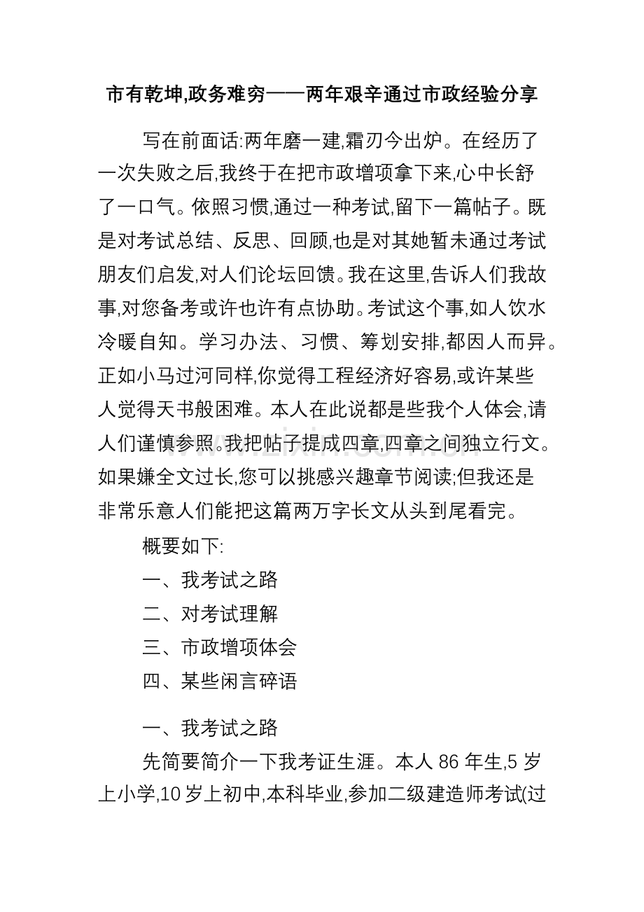 市有乾坤,政务难穷——两年艰辛通过市政经验分享
