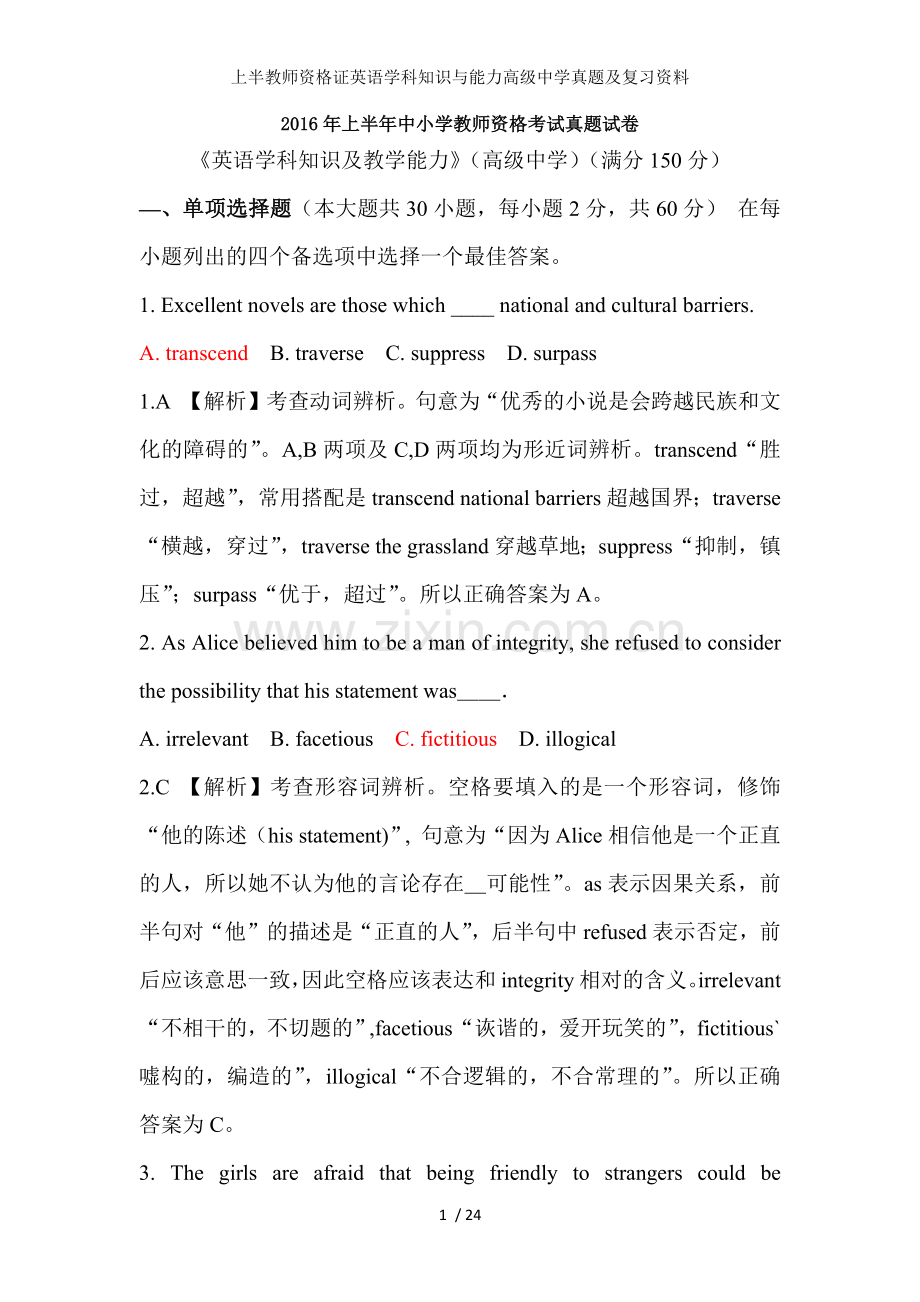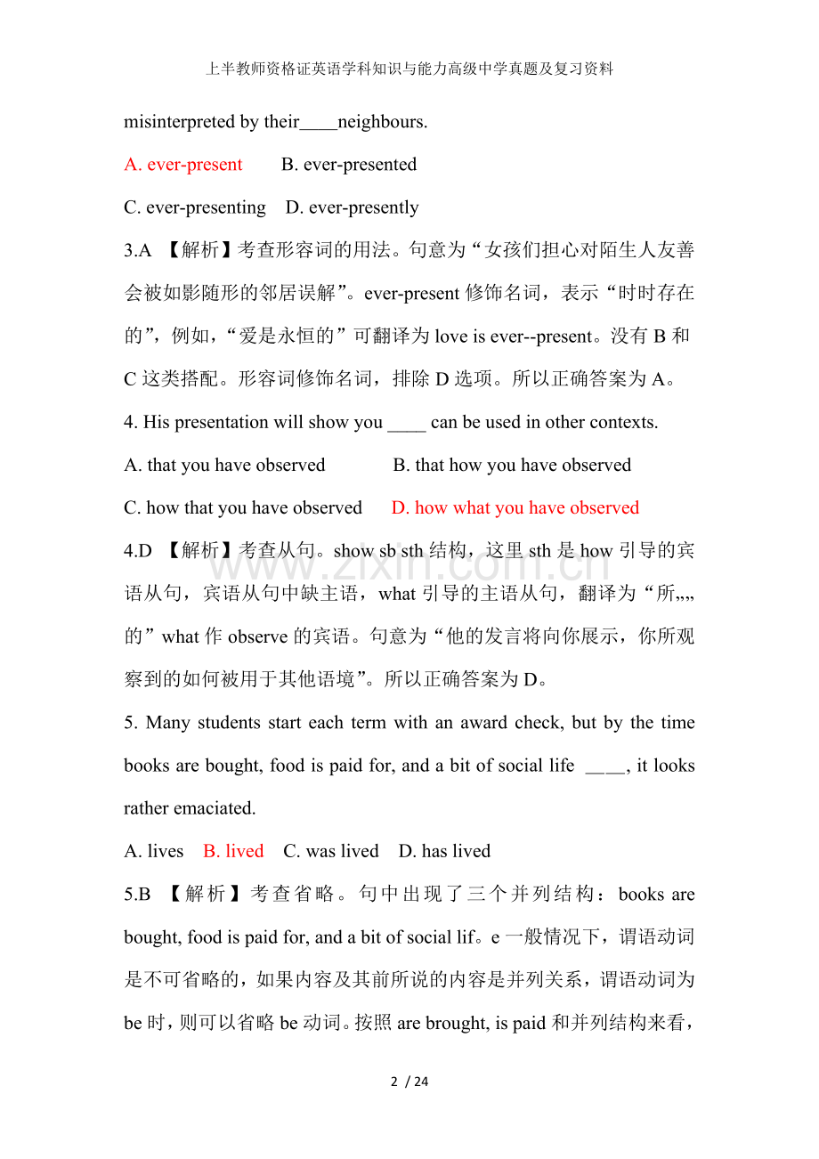 上半教师资格证英语学科知识与能力高级中学真题及复习资料