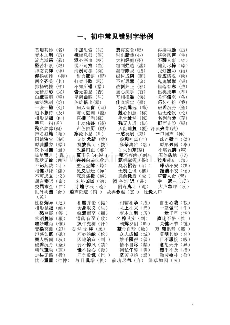 莫明其妙 (名) 不加思索 (假) 费寝忘食(废) 再接再励 (厉) 变本加利 (厉) 掩旗息鼓 (偃) 别出新裁(心) 谈笑风声 (生) 流光溢采 (彩) 沤心沥血 (呕) 大相经庭(径) 不醒人事(省) 坚苦朴素 (艰) 锐不可挡 (当) 粗制烂造 (滥) 鞠躬尽粹(瘁) 神态安祥 (详) 清洌可鉴 (冽) 墨守陈规 (成) 张灯接彩 (结) 仰扬顿挫 (抑) 甜言密语 (蜜) 绿树成阴 (荫) 反应情况 (映) 两全齐美 (其) 打架斗欧 (殴) 不可思意 (议) 鬼鬼崇崇 (祟) 抑扬钝挫 (顿) 不知所错(措) 改斜归正 (邪) 错落有志 (致) 无精打彩 (采) 沓无消息 (杳) 痛心疾手 (首) 出类拔翠 (萃) 白壁微瑕 (璧) 卑躬曲膝 (屈) 互相推委 (诿) 关怀倍至 (备) 如法泡制 (炮) 英雄倍出(辈) 佳宾满堂 (嘉) 巧装打扮 (乔) 一张一驰 (弛) 病入膏盲 (肓) 好高鹜远 (骛) 破斧沉舟 (釜) 迫不急待 (及) 陈词烂调 (滥) 趁心如意 (称) 语无论次 (伦) 相形见拙 (绌) 直接了当(截) 毛骨耸然 (悚) 名列前矛 (茅) 手屈一指(首) 丰功伟迹 (绩) 残无人道 (惨) 挺而走险 (铤) 殉私舞弊(徇) 声色俱历 (厉) 天翻地复 (覆) 汗流夹背(浃)