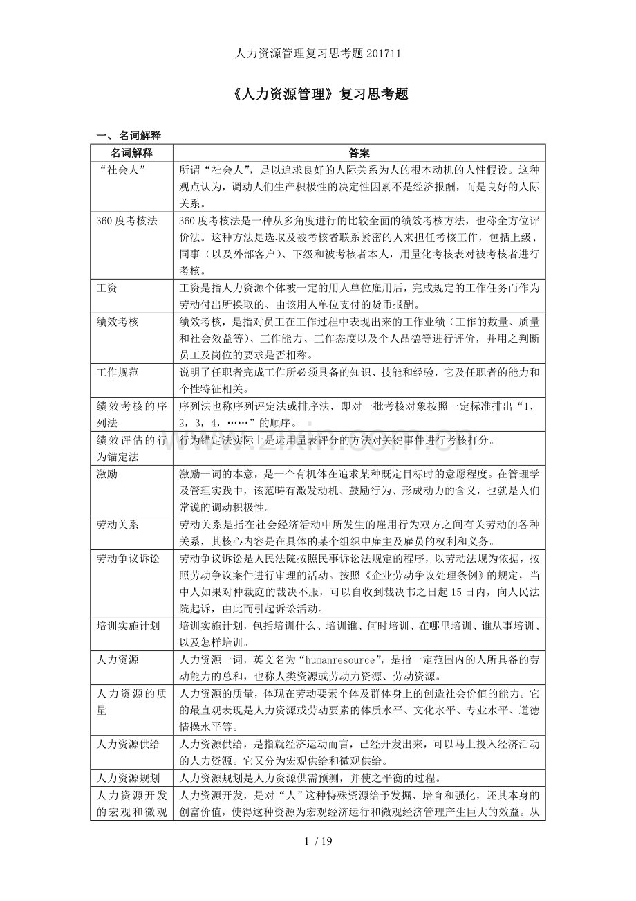 人力资源一词,英文名为“human resource”,是指一定范围内的人所具备的劳动能力的总和,也称人类资源或劳动力资源、劳动资源。