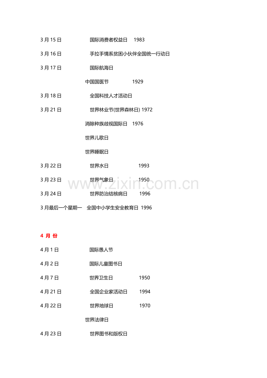 每年重阳节 中国老年节(义务助老活动日) 1989