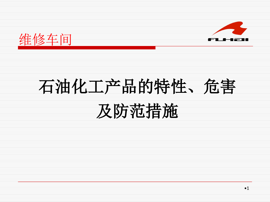 单击此处编辑母版标题样式,单击此处编辑母版文本样式,第二级,第三级,第四级,第五级,*,石油化工产品的特性、危害及防范措施,维修车间,1,一、石油化工含义,石油化学工业简称石油化工,是指以石油和天然气为原料,生产石油产品和石油化工产品的加工工业,是一个基础性产业,它为农业、能源、交通、机械、电子、纺织、轻工、建筑、建材等工农业和人民日常生活提供配套和服务,在国民经济中占有举足轻重的地位,2,二、石油化工产品种类,石油产品又称油品,主要包括各种燃料油(汽油、煤油、柴油等)和润滑油以及液化石油气、石油焦碳、石蜡、沥青等。生产这些产品的加工过程常被称为石油炼制,简称炼油。石油化工产品以炼油过程提供的原料油进一步化学加工获得。生产石油化工产品的第一步是对原料油和气(如丙烷、汽油、柴油等)进行裂解,生成以乙烯、丙烯、丁二烯、苯、甲苯、二甲苯为代表的基本化工原料。第二步是以基本化工原料生产多种有机化工原料(约200种)及合成材料(塑料、合成纤维、合成橡胶)。这两步产品的生产属于石油化工的范围,3,4,现根据我们的工作性质,列举以下几种我们比较常见的而且会遇到的石化产物作一深入了解。如:汽油、苯、硫化氢、氢气等。,5,一、汽油,1,、物理性质,汽油为油品的一大类,是主要是由C4C10复杂烃类的混合物,为无色至淡黄色的易流动液体,有特殊臭味,相对密度(水,=1,)0.70-0.78 g/cm,3,,,很难溶解于水,易燃,闪点:,-46,,馏程为30至205,空气中含量为74123,g/,m,3,时遇火爆炸。乙醇汽油含10%乙醇,其余为汽油。汽油的热值约为44000kJ/kg。燃料的热值是指1kg燃料完全燃烧后所产生的热量。,6,侵入途径,:吸入、食入、经皮吸收。,急性中毒,:对中枢神经系统有麻醉作用。轻度中毒症状有头晕、头痛、恶心、呕吐、步态不稳、共济失调。高浓度吸入出现中毒性脑病。极高浓度吸入引起意识突然丧失、反射性呼吸停止。可伴有中毒性周围神经病及化学性肺炎。部分患者出现中毒性精神病。液体吸入呼吸道可引起吸入性肺炎。溅入眼内可致角膜溃疡、穿孔,甚至失明。皮肤接触致急性接触性皮炎,甚至灼伤。吞咽引起急性胃肠炎,重者出现类似急性吸入中毒症状,并可引起肝、肾损害。,慢性中毒,:神经衰弱综合征、植物神经功能症状类似精神分裂症。皮肤损害。,2,、危害,一、汽油,7,危险特性,:极易燃烧。其蒸气与空气可形成爆炸性混合物。遇明火、高热极易燃烧爆炸。与氧化剂能发生强烈反应。其蒸气比空气重,能在较低处扩散到相当远的地方,遇明火会引着回燃。,一、汽油,8,3,、应急处理,.,泄漏应急处理,迅速撤离泄漏污染区人员至安全区,并进行隔离,严格限制出入。切断火源。建议应急处理人员戴自给正压式呼吸器,穿消防防护服。尽可能切断泄漏源。防止进入下水道、排洪沟等限制性空间。,小量泄漏,:用砂土、蛭(zh)石或其它惰性材料吸收。或在保证安全的情况下,就地焚烧。,大量泄漏,:构筑围堤或挖坑收容;用泡沫覆盖,降低蒸气灾害。用防爆泵转移至槽车或专用收集器内,回收或运至废物处理场所处置。,一、汽油,9,、防护措施,呼吸系统防护:一般不需要特殊防护,高浓度接触时可佩戴自吸过滤式防毒面具(半面罩)。,眼睛防护:一般不需要特殊防护,高浓度接触时可戴化学安全防护眼镜。,身体防护:穿防静电工作服。,手防护:戴防苯耐油手套。,其它:工作现场严禁吸烟。避免长期反复接触。,一、汽油,10,、急救措施,皮肤接触:立即脱去被污染的衣着,用肥皂水和清水彻底冲洗皮肤。就医。,眼睛接触:立即提起眼睑,用大量流动清水或生理盐水彻底冲洗至少15分钟。就医。,吸入:迅速脱离现场至空气新鲜处。保持呼吸道通畅。如呼吸困难,给输氧。如呼吸停止,立即进行人工呼吸。就医。,食入:给饮牛奶或用植物油洗胃和灌肠。就医。,灭火方法:喷水冷却容器,可能的话将容器从火场移至空旷处。灭火剂:泡沫、干粉、二氧化碳。用水灭火无效,。,一、汽油,11,二、苯,1,、物理性质,苯(C6H6)一种碳氢化合物即最简单的芳烃,在常温下是甜味、可燃、有致癌毒性的无色透明液体,并带有强烈的芳香气味。沸点为80.1,熔点为5.5,苯比水密度低,密度为0.88g/ml,但其分子质量比水重。苯难溶于水,1升水中最多溶解1.7g苯;但苯是一种良好的有机溶剂,溶解有机分子和一些非极性的无机分子的能力很强,除甘油,乙二醇等多元醇外能与大多数有机溶剂混溶.除碘和硫稍溶解外,无机物在苯中不溶解,苯是一种石油化工基本原料,其产量和生产的技术水平是一个国家石油化工发展水平的标志之一。,12,2,、,危害,由于苯的挥发性大,暴露于空气中很容易扩散。人和动物吸入或皮肤接触大量苯进入体内,会引起急性和慢性苯中毒。有研究报告表明,引起苯中毒的部分原因是由于在体内苯生成了苯酚。,特别注意:,(1)长期吸入会侵害人的神经系统,急性中毒会产生神经痉挛甚至昏迷、死亡。,(2)在白血病患者中,有很大一部分有苯及其有机制品接触历史。,二、苯,13,急性苯中毒临床表现,1轻度中毒者可有头痛、头晕、流泪、咽干、咳嗽、恶心呕吐、腹痛、腹泻、步态不稳;皮肤、指甲及粘膜紫组、急性结膜炎、耳鸣、畏光、心悸以及面色苍白等症状。,2中度和重度中毒者,除上述症状加重、嗜睡、反应迟钝、神志恍惚等外,还可能迅速昏迷、脉