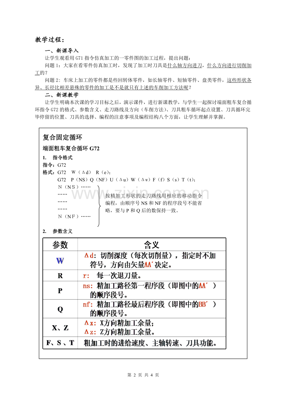 2、掌握端面粗车复合循环G72指令的格式及各参数含义。
