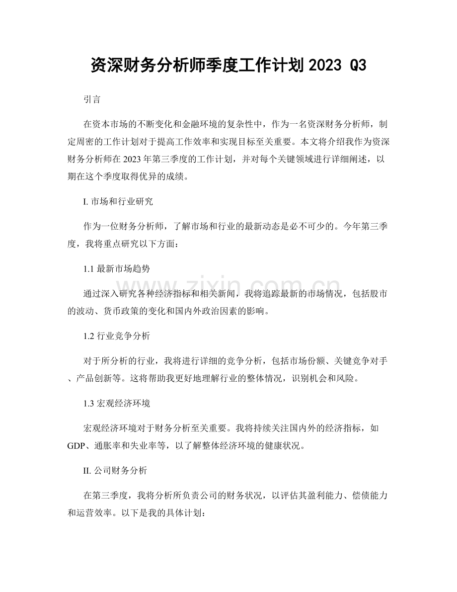 资深财务分析师季度工作计划2023 Q3