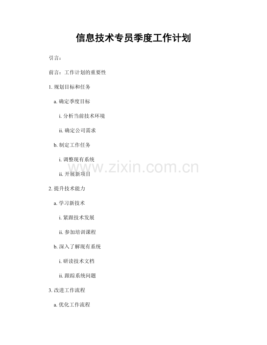 信息技术专员季度工作计划