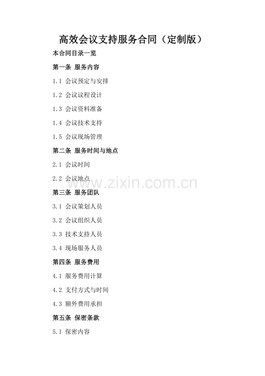 1. 本合同:指双方签署的《高效会议支持服务合同(定制版)》。