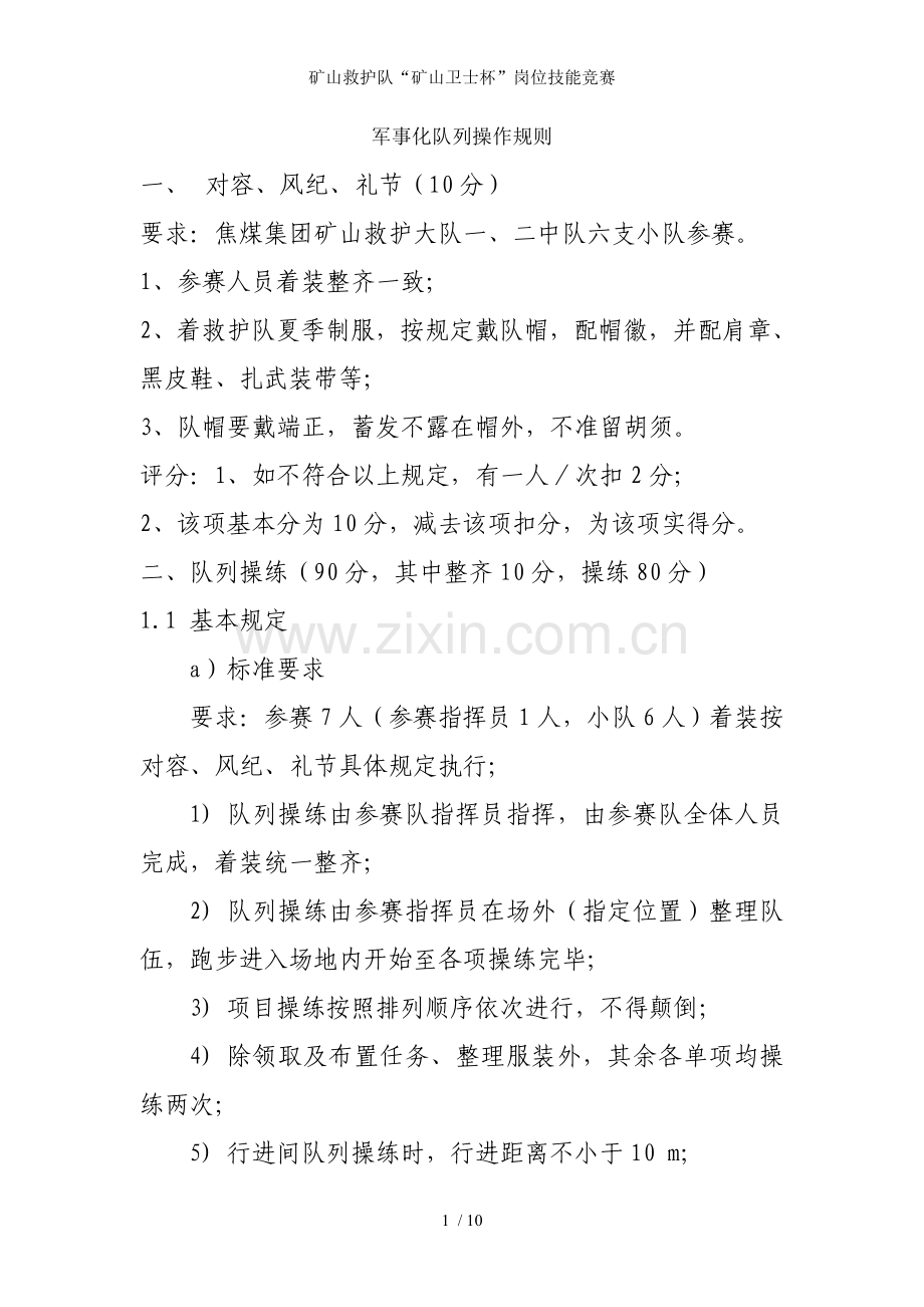1) 队列操练由参赛队指挥员指挥,由参赛队全体人员完成,着装统一整齐;