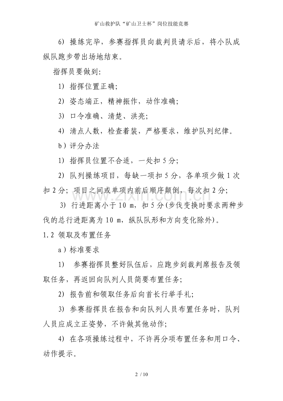 2) 队列操练由参赛指挥员在场外(指定位置)整理队伍,跑步进入场地内开始至各项操练完毕;